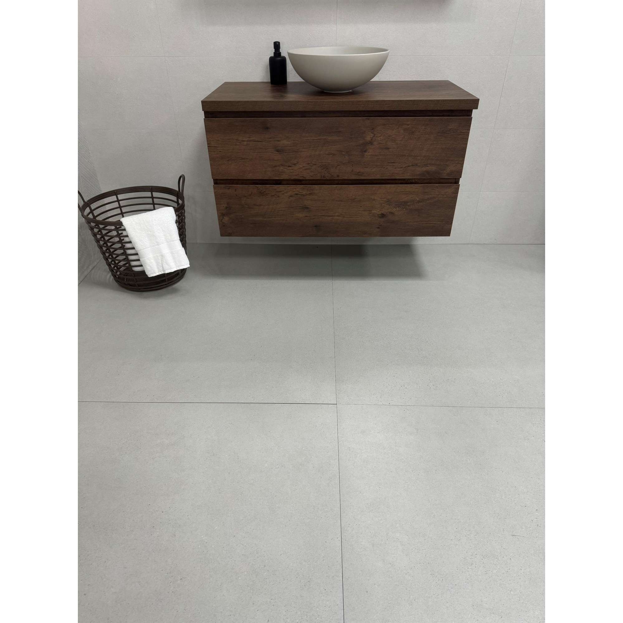 De Cifre Ceramica Borneo wand- en vloertegel in White mat (wit) is een prachtige toevoeging aan elke badkamer of keuken. Met zijn afmetingen van 120x120cm en gerectificeerde randen straalt deze tegel een moderne en stijlvolle uitstraling uit. De betonlook voegt een eigentijdse touch toe aan elke ruimte, terwijl de matte afwerking zorgt voor een subtiele elegantie. Of je nu een minimalistische of een luxe uitstraling wilt creëren, deze tegel past perfect bij verschillende interieurstijlen.