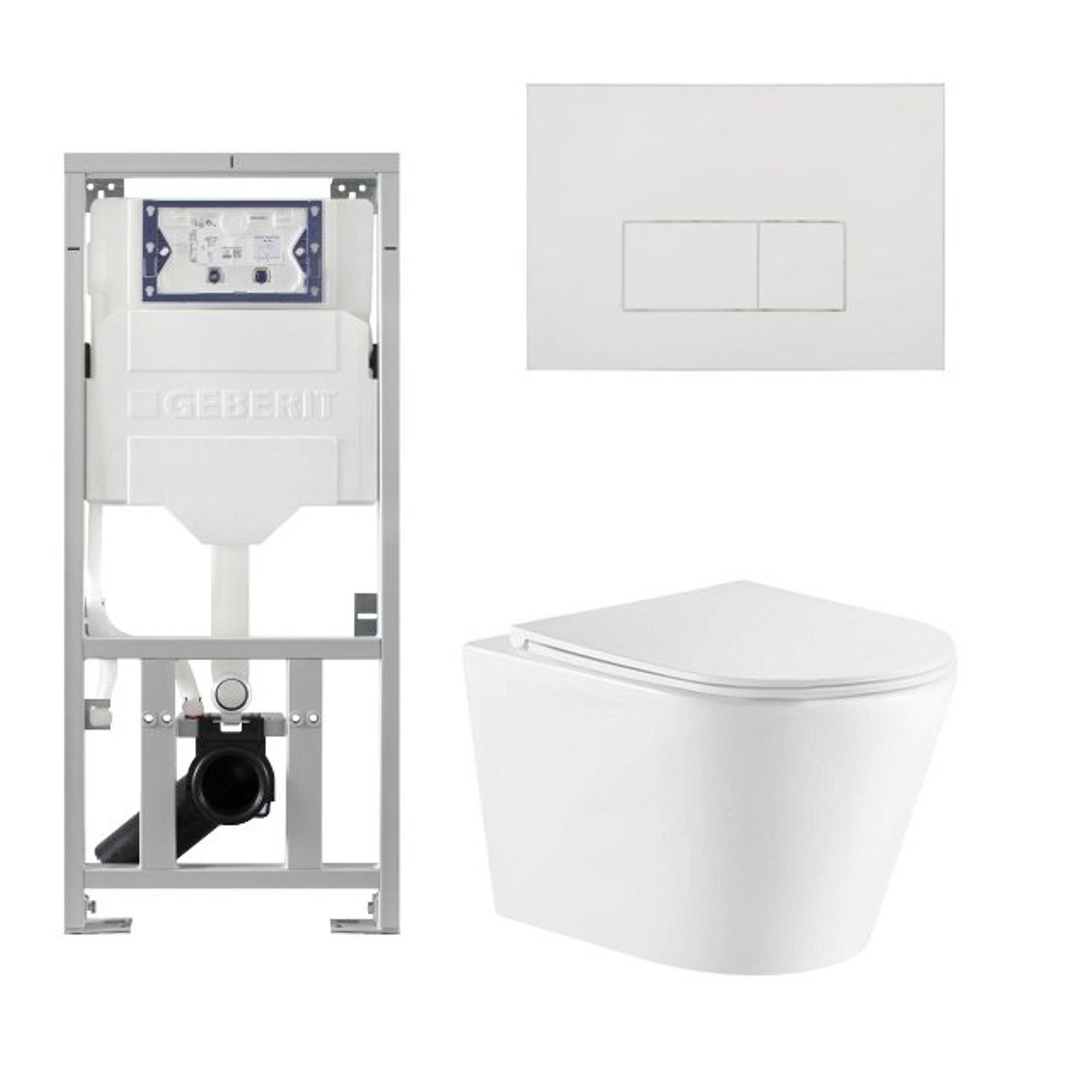 QeramiQ Dely Toiletset - 36.3x51.7cm - diepspoel - rimless - Geberit UP320 inbouwreservoir - met Burda frame - softclose toiletzitting - glans witte bedieningsplaat - rechthoekige knoppen - wit mat