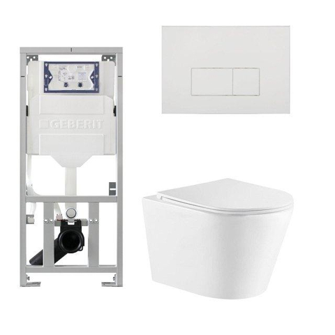 De QeramiQ Dely Toiletset straalt stijl en elegantie uit met zijn strakke lijnen en glanzend witte afwerking. Het rechthoekige design van de knoppen geeft een moderne touch aan de set, waardoor het een tijdloze uitstraling heeft die perfect past bij elke badkamerinrichting.