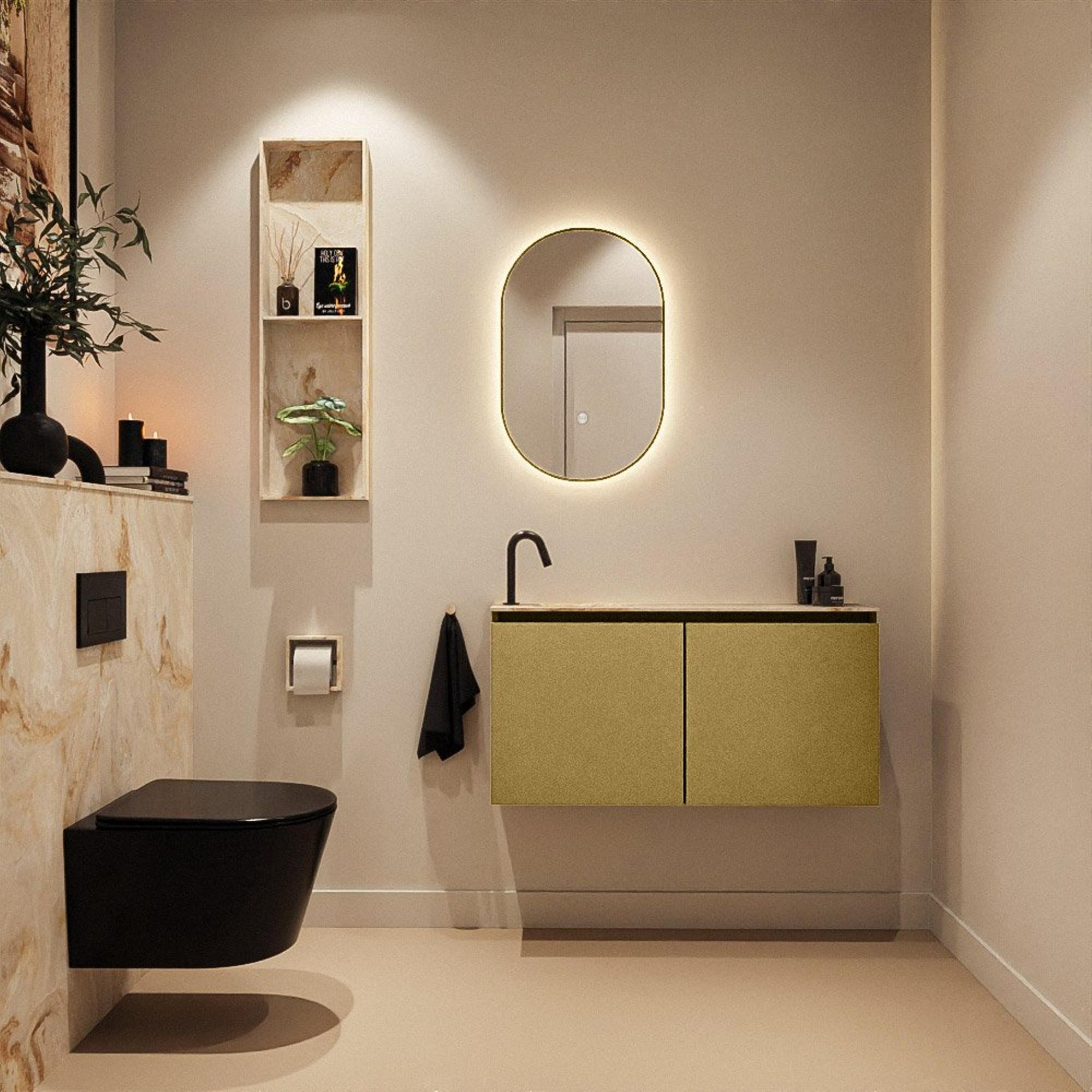 MONDIAZ TURE-DLUX 100cm toiletmeubel Oro. EDEN wastafel Frappe positie links. Met 1 kraangat.