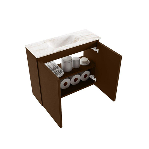MONDIAZ TURE-DLUX 60cm toiletmeubel Rust. EDEN wastafel Frappe positie midden. Zonder kraangat.