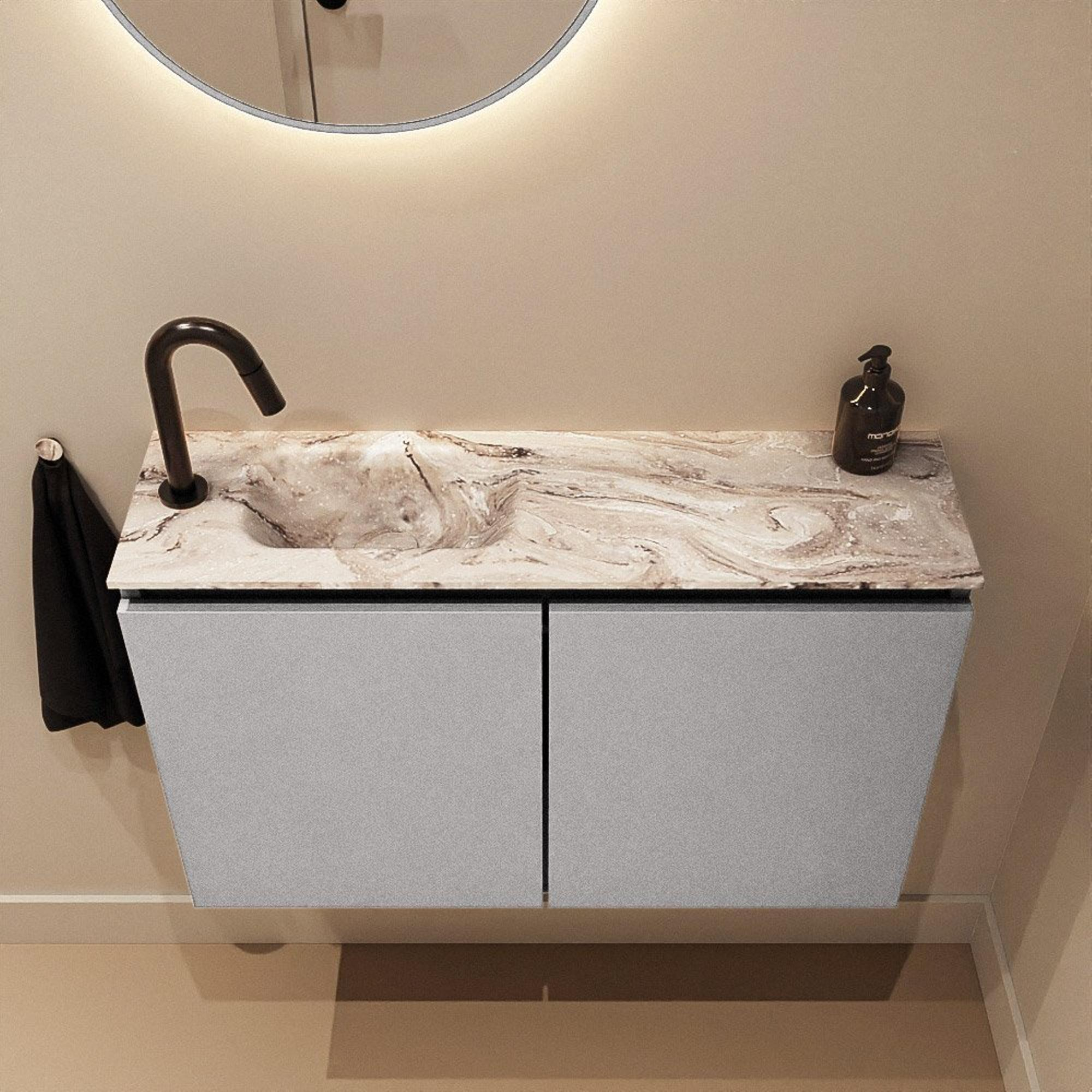 MONDIAZ TURE-DLUX 80cm toiletmeubel Plata. EDEN wastafel Glace positie links. Met 1 kraangat.