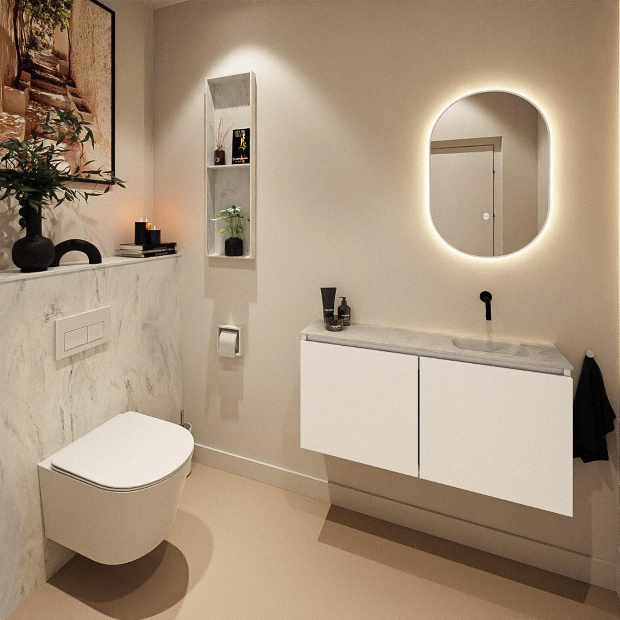 MONDIAZ TURE-DLUX 100cm toiletmeubel Talc. EDEN wastafel Opalo positie rechts. Zonder kraangat.