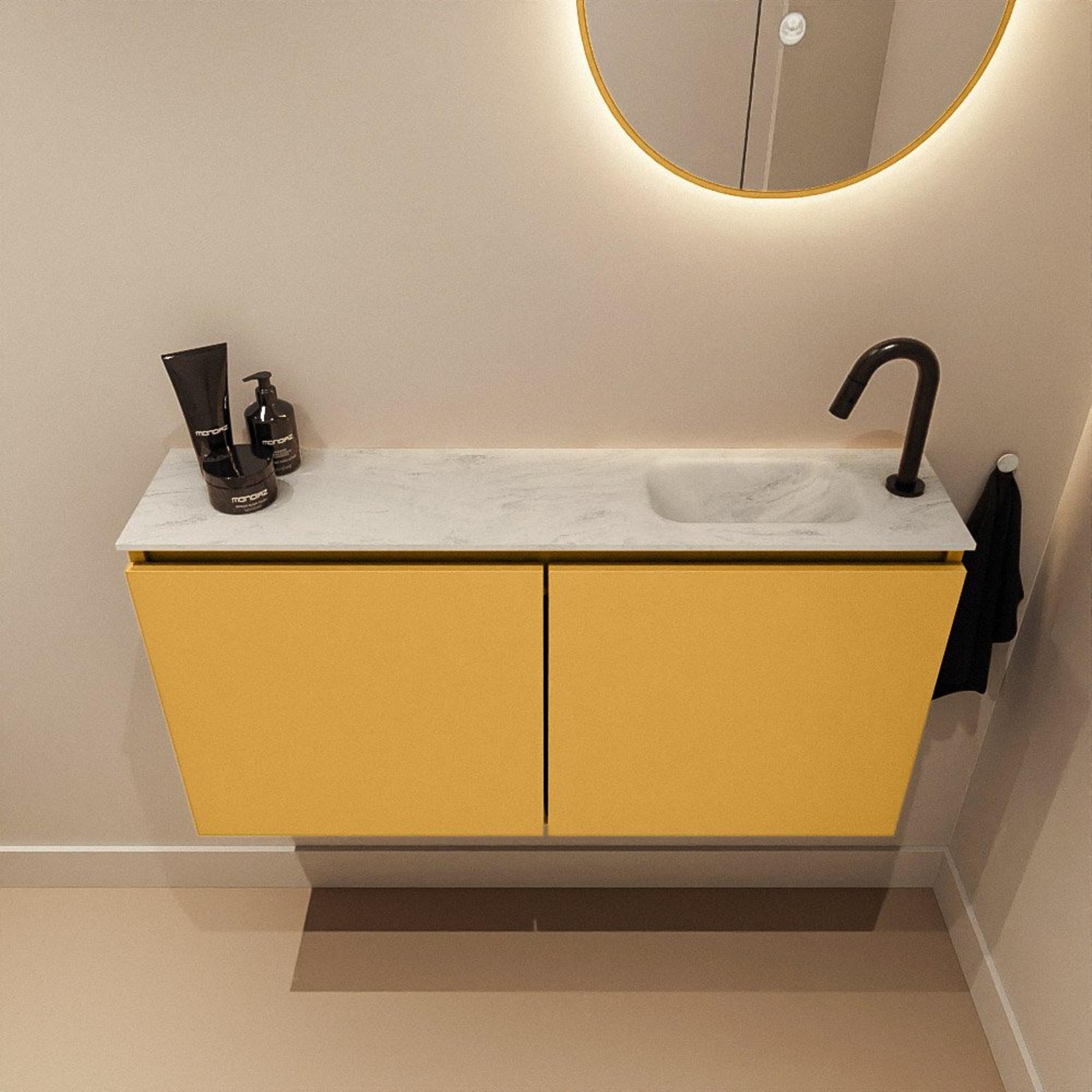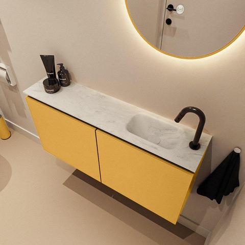 MONDIAZ TURE-DLUX 100cm toiletmeubel Ocher. EDEN wastafel Opalo positie rechts. Met 1 kraangat.