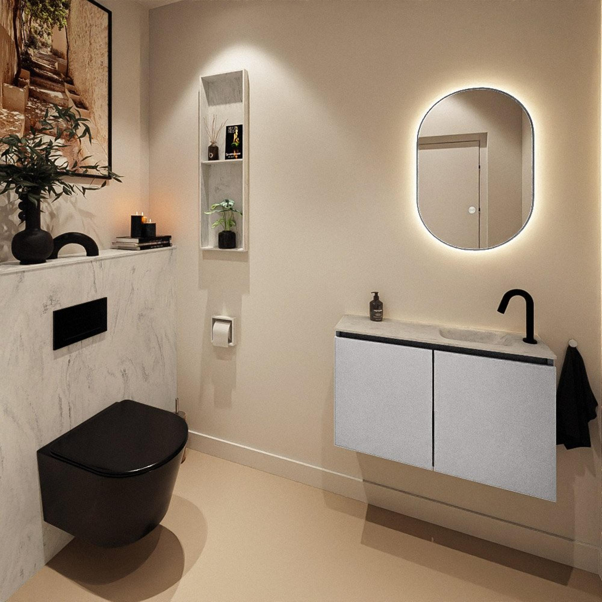 MONDIAZ TURE-DLUX 80cm toiletmeubel Plata. EDEN wastafel Opalo positie rechts. Met 1 kraangat.