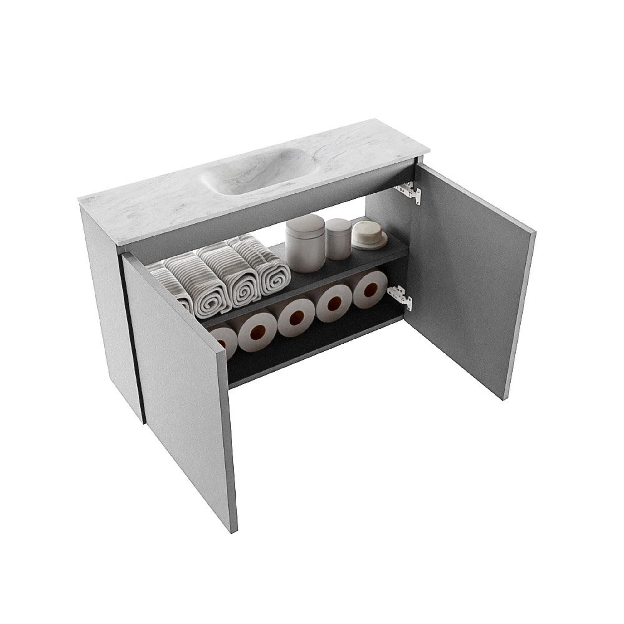 MONDIAZ TURE-DLUX 80cm toiletmeubel Plata. EDEN wastafel Opalo positie midden. Zonder kraangat.