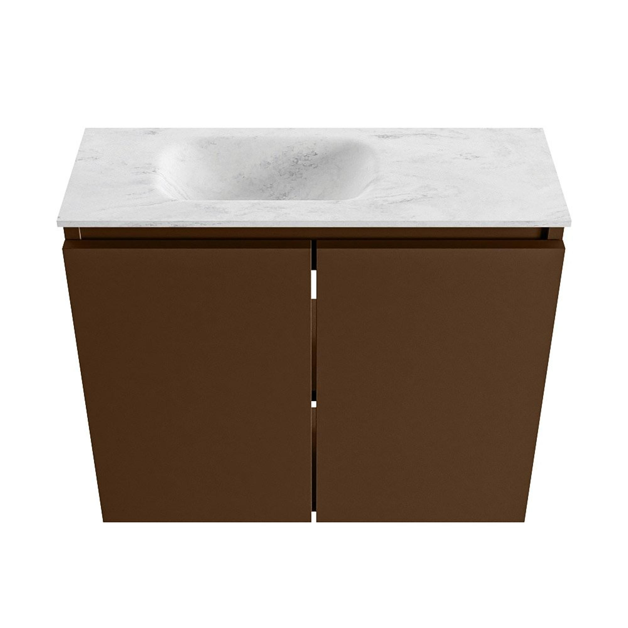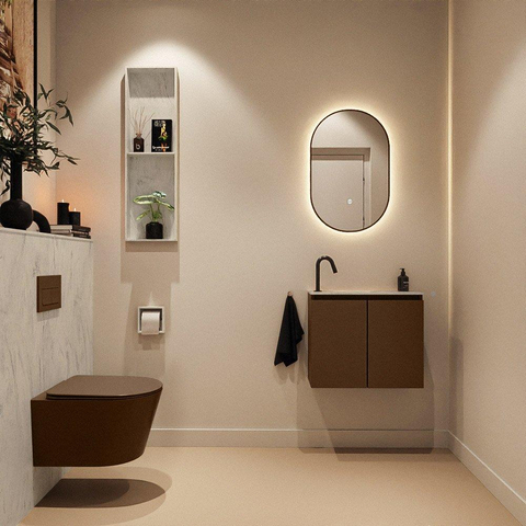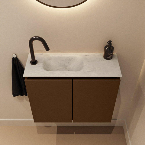 MONDIAZ TURE-DLUX 60cm toiletmeubel Rust. EDEN wastafel Opalo positie links. Met 1 kraangat.