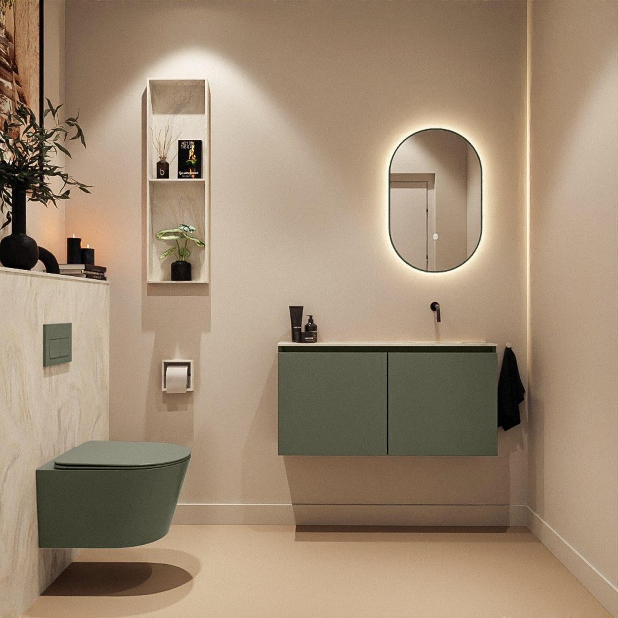 MONDIAZ TURE-DLUX 100cm toiletmeubel Army. EDEN wastafel Ostra positie rechts. Zonder kraangat.