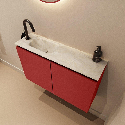 MONDIAZ TURE-DLUX 80cm toiletmeubel Fire. EDEN wastafel Ostra positie links. Met 1 kraangat.