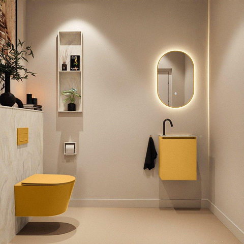 MONDIAZ TURE-DLUX 40cm toiletmeubel Ocher. EDEN wastafel Ostra positie rechts. Met 1 kraangat.