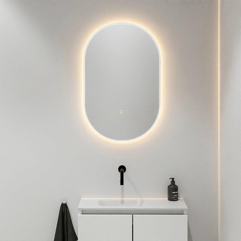 Ontdek GLOW, de ovale spiegel van 45x90 cm die niet alleen verlicht, maar ook jouw badkamerervaring naar een hoger niveau tilt. De rand van deze prachtige spiegel is verkrijgbaar in 17 verschillende kleuren, zodat je hem perfect kunt afstemmen op jouw stijl. De ingebouwde bewegingssensor zorgt ervoor dat de subtiele indirecte LED-verlichting rondom de spiegel automatisch oplicht wanneer iemand de ruimte betreedt. Dankzij deze handige sensor blijven vieze vingers op de spiegel achterwege, wat niet alleen hygiënisch, maar ook praktisch is. Bovendien gaat het licht automatisch uit, waardoor je energie bespaart en je elektriciteitsrekening vermindert. GLOW voegt niet alleen stijl toe, maar maakt jouw dagelijkse routine ook hygiënisch, gemakkelijk én milieubewust!