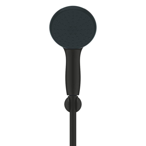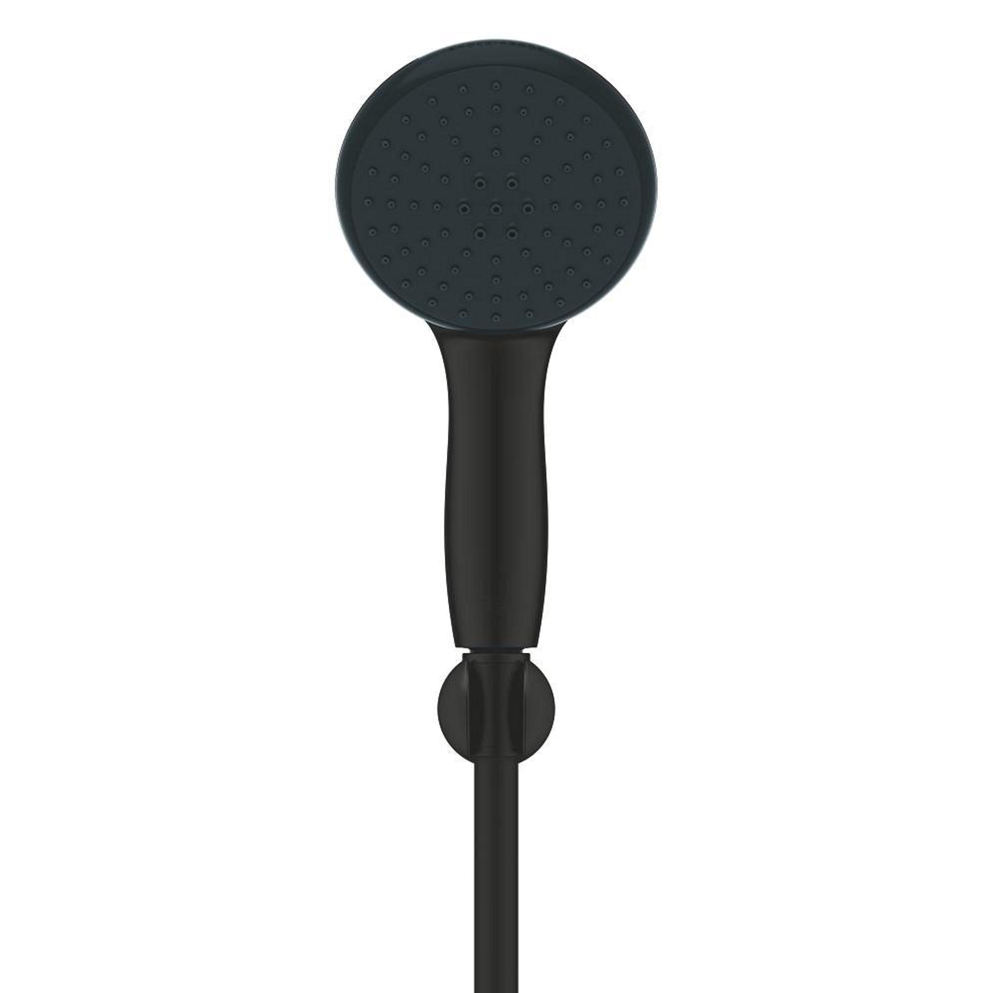 Deze handdoucheset valt direct op door zijn strakke, matte zwarte design dat een eigentijdse en luxe sfeer toevoegt aan je badkamer. De ronde vormgeving is tijdloos en past perfect bij moderne en minimalistische interieurs. Dankzij de hoogwaardige afwerking blijft de kleur mooi en slijtvast, zelfs bij dagelijks gebruik. Zo creëer je een badkamer die niet alleen functioneel is, maar ook een echte blikvanger. De matzwarte look geeft je ruimte een stoere, maar toch elegante uitstraling, waardoor je badkamer een persoonlijke touch krijgt die je nergens anders vindt.Duurzaam
