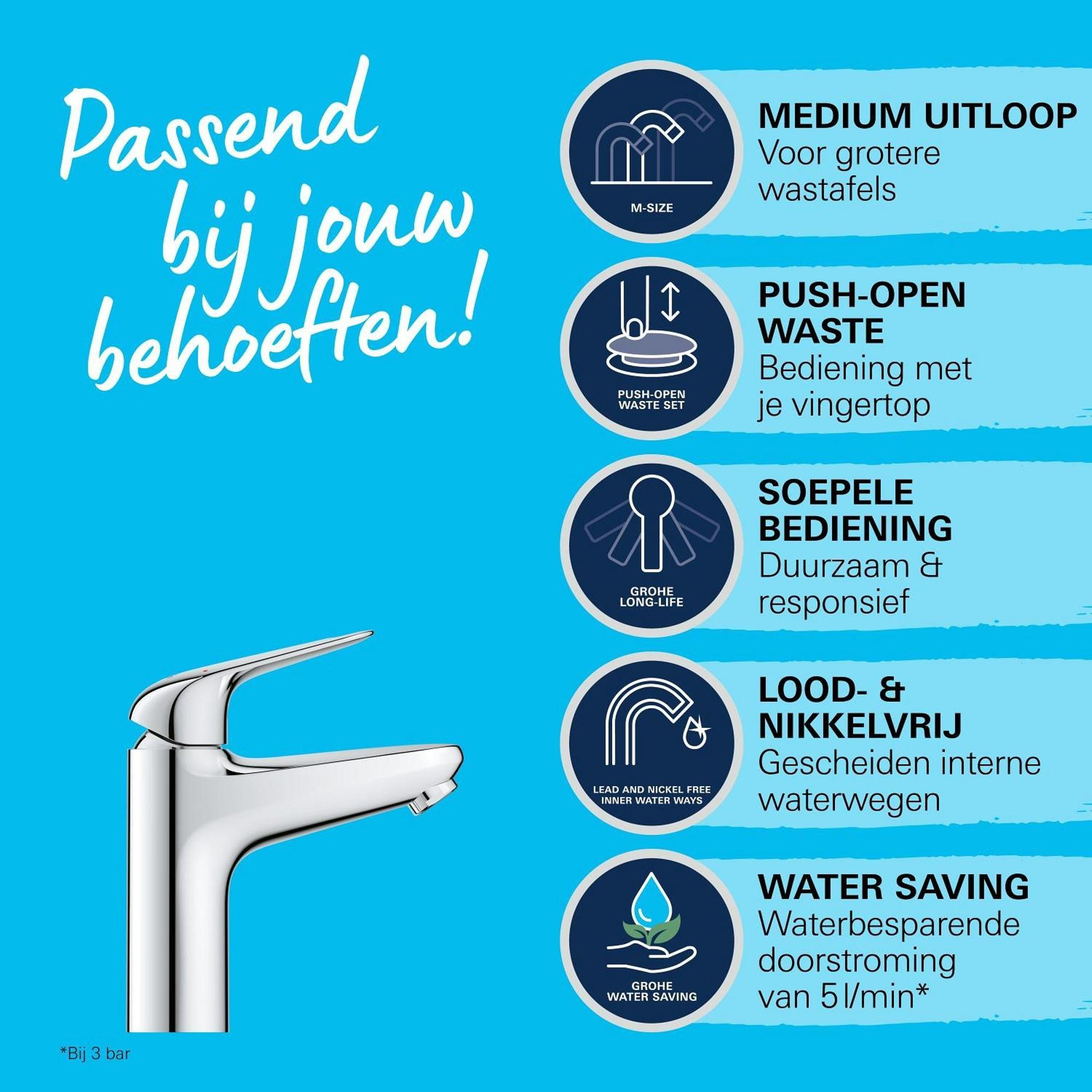 GROHE Swift QuickFix Wastafelkraan - m-size - met push open waste - chroom