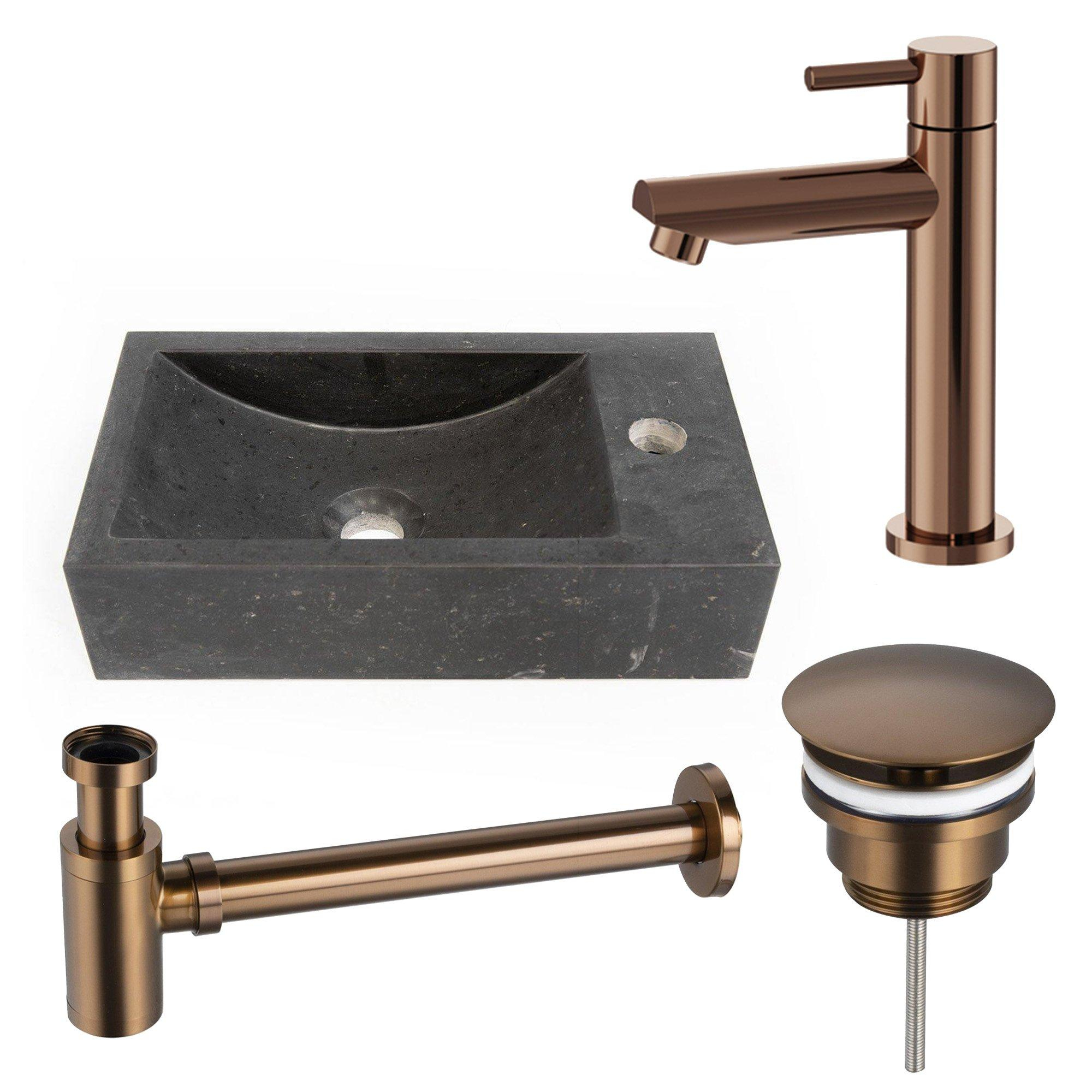 Saniclass Fuente fonteinset - 40x22 - 1 kraangat - rechts - natuursteen - fonteinkraan Geborsteld koper PVD (Koper) - donker