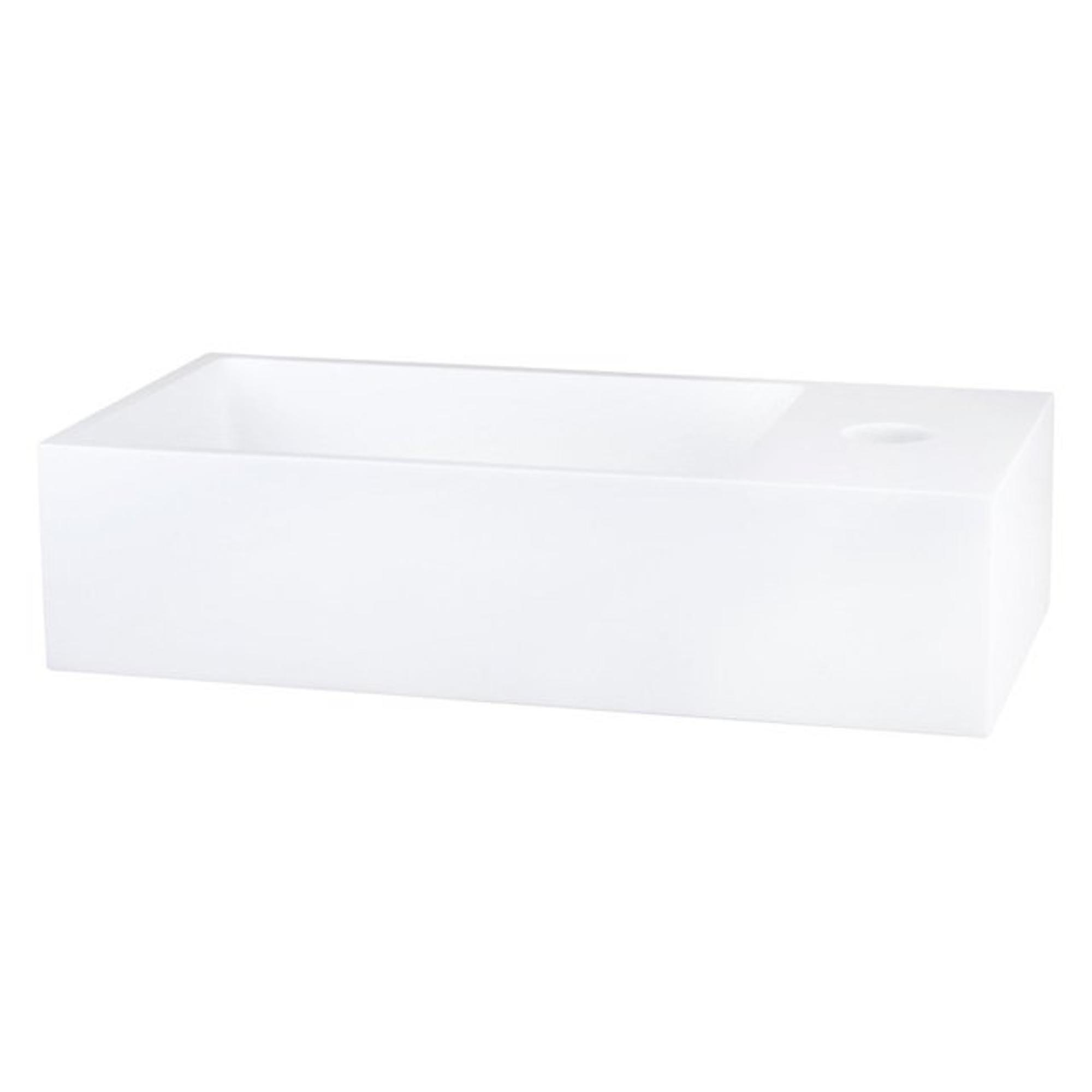 Fortifura Fuente fonteinset - 36x18.5x9cm - 1 kraangat - solid surface - fonteinkraan messing geborsteld - mat wit