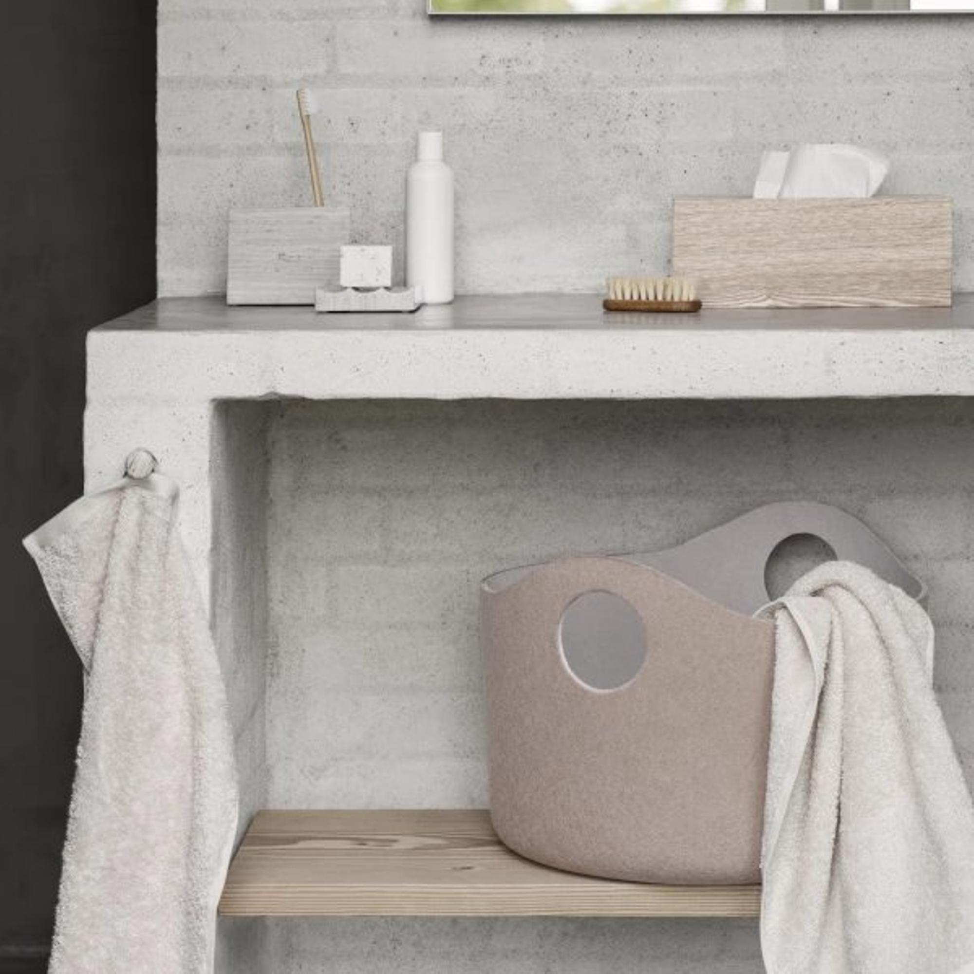 Het strakke, rechthoekige ontwerp met afgeronde randen sluit mooi aan bij moderne badkamers en toiletruimtes, maar combineert net zo goed met een tijdloze of landelijke stijl. Het zichtbare hout geeft een warme, natuurlijke uitstraling, waardoor het geheel minder “klinisch” oogt dan een standaard plastic doos. Door de rustige vormgeving trekt het accessoire niet onnodig de aandacht, maar voegt het wel duidelijk stijl toe. Zo maak je van iets kleins als een tissuebox toch een doordacht onderdeel van je badkameraccessoires, passend bij houten meubelen, accessoires in natuurtinten en zachte texturen zoals handdoeken en manden.