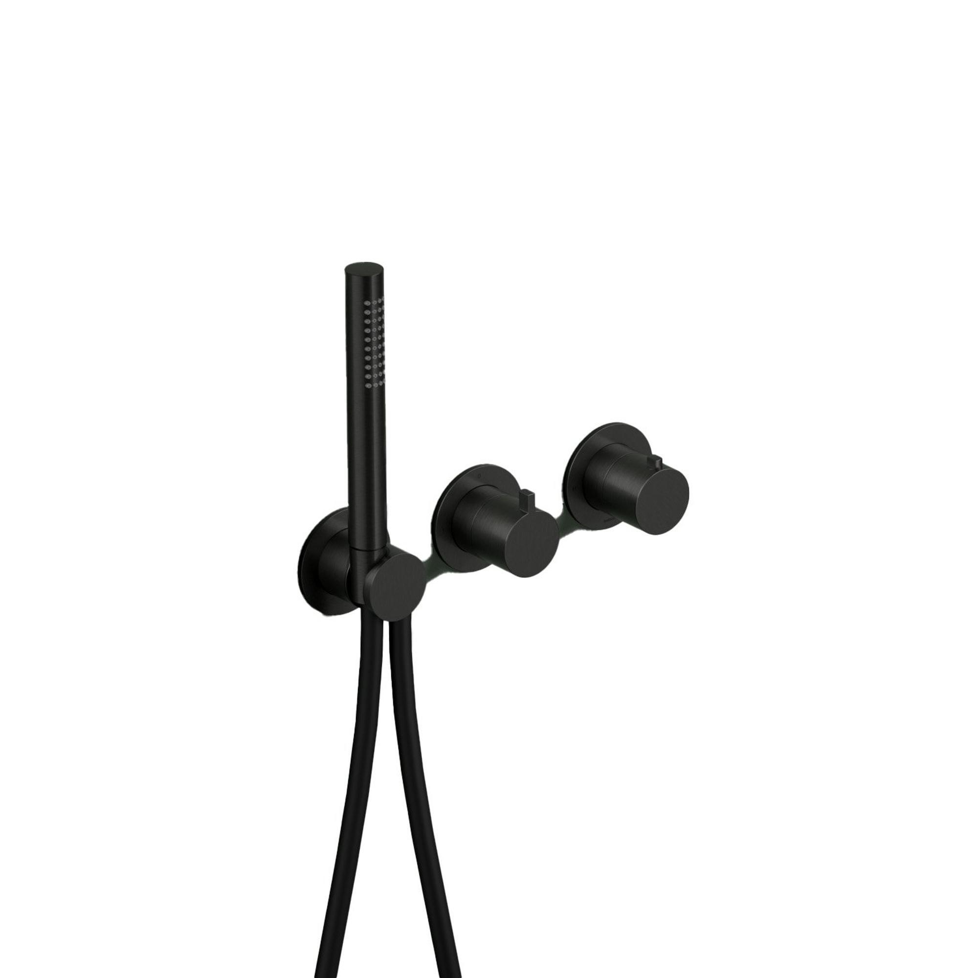 Met dit stijlvolle afbouwdeel geef je jouw badkamer een moderne en verfijnde uitstraling. Het is ontworpen om naadloos te passen bij inbouwthermostaten en biedt je een slimme, praktische oplossing voor het bedienen van je douche. Dankzij het 2-weg omstel schakel je moeiteloos tussen verschillende wateruitlaten, wat zorgt voor een flexibele en persoonlijke douche-ervaring. De meegeleverde handdouche en doucheslang maken het geheel compleet, zodat je niet alleen functioneel, maar ook comfortabel doucht. De matte zwarte PVD-afwerking voegt een eigentijdse, luxe touch toe die perfect aansluit bij een strak en modern interieur. Zo transformeer je jouw badkamer in een plek waar stijl en gebruiksgemak samenkomen en waar je elke dag weer met plezier onder de douche stapt.