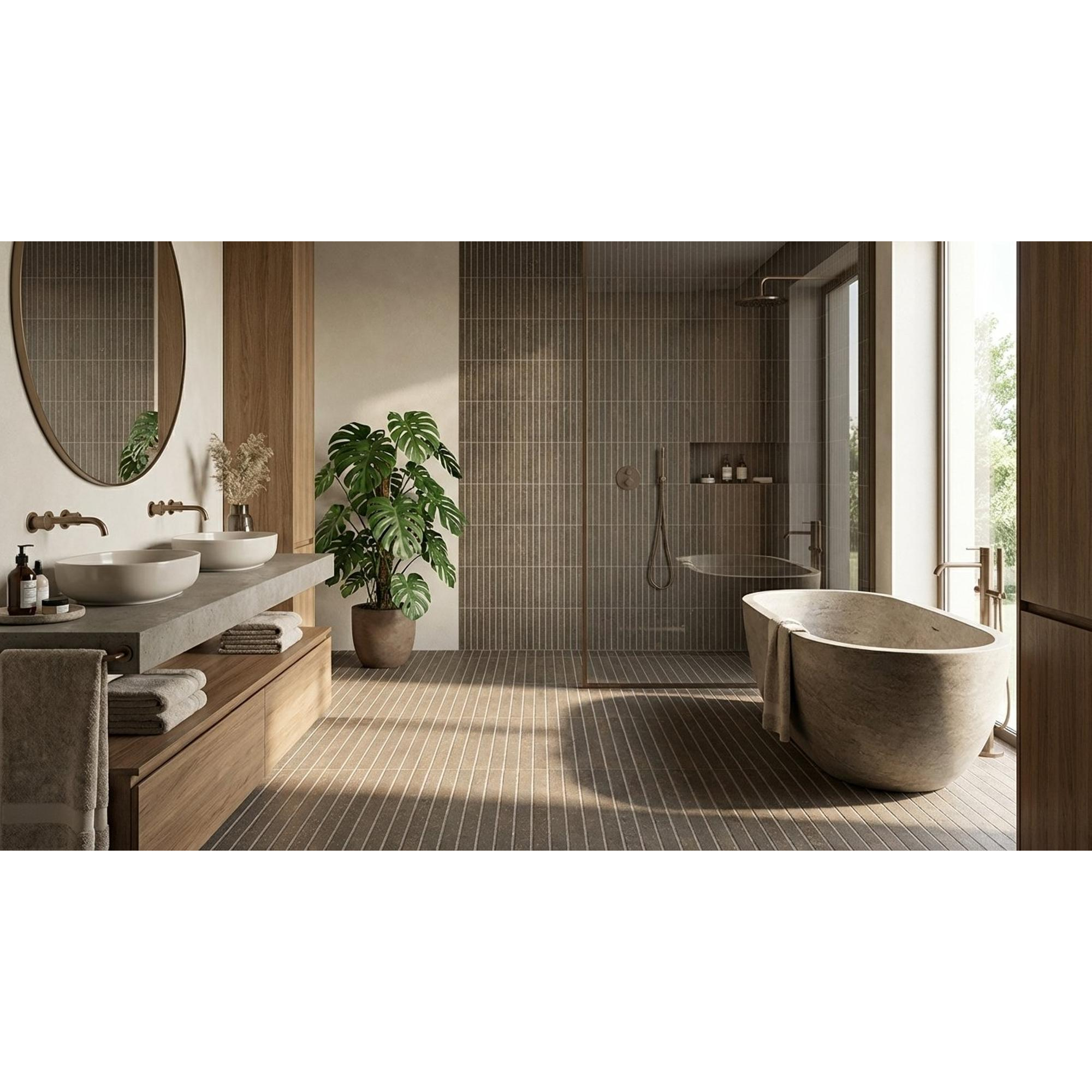 De Fap Ceramiche Nobu wand- en vloertegel in natuursteen look met Cocoa mat afwerking brengt een vleugje elegantie en warmte naar elke badkamer of keuken. Met zijn afmetingen van 24x30.5cm is deze tegel perfect voor het creëren van een stijlvolle en moderne uitstraling. De bruine tint voegt een natuurlijke en rustgevende sfeer toe aan de ruimte, terwijl de natuursteen look zorgt voor een tijdloze en luxe uitstraling. Of je nu een nieuwe badkamer wilt ontwerpen of een keuken wilt renoveren, deze tegel is de perfecte keuze voor een verfijnde afwerking.