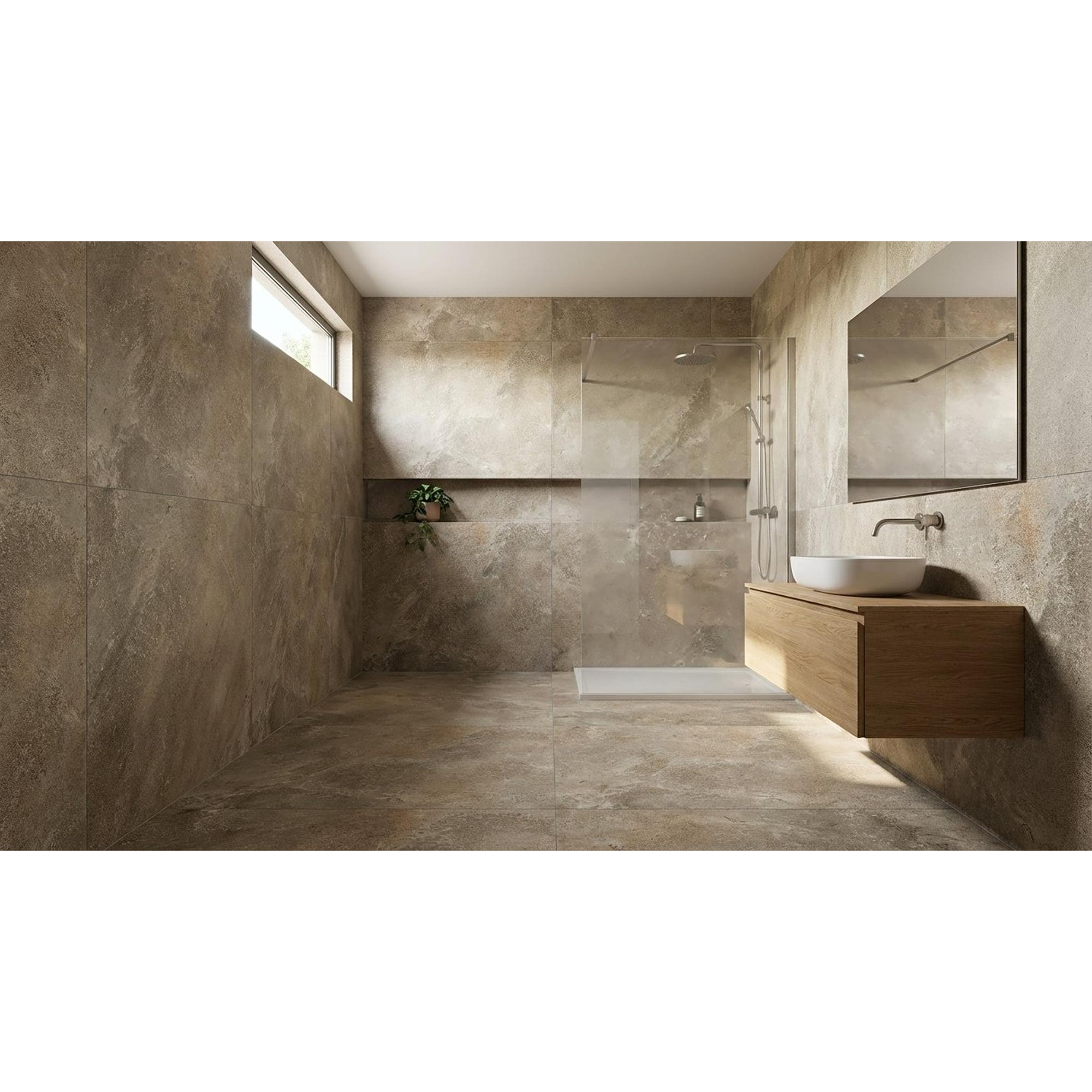 De Fap Ceramiche Nobu wand- en vloertegel in 120x120cm met een prachtige natuursteen look in Slate mat (bruin) is een absolute blikvanger voor elke badkamer of keuken. Deze tegel straalt elegantie uit en voegt een vleugje luxe toe aan de ruimte. Met zijn gerectificeerde afwerking en hoogwaardige materialen is deze tegel niet alleen stijlvol, maar ook duurzaam en gemakkelijk te onderhouden. Of je nu een moderne of klassieke inrichting hebt, deze tegel past perfect bij verschillende interieurstijlen en geeft de ruimte een tijdloze uitstraling.