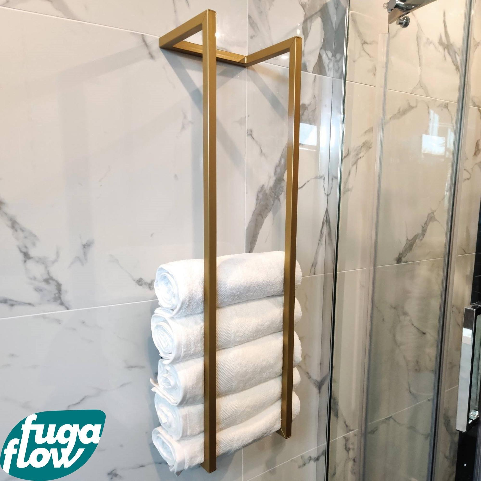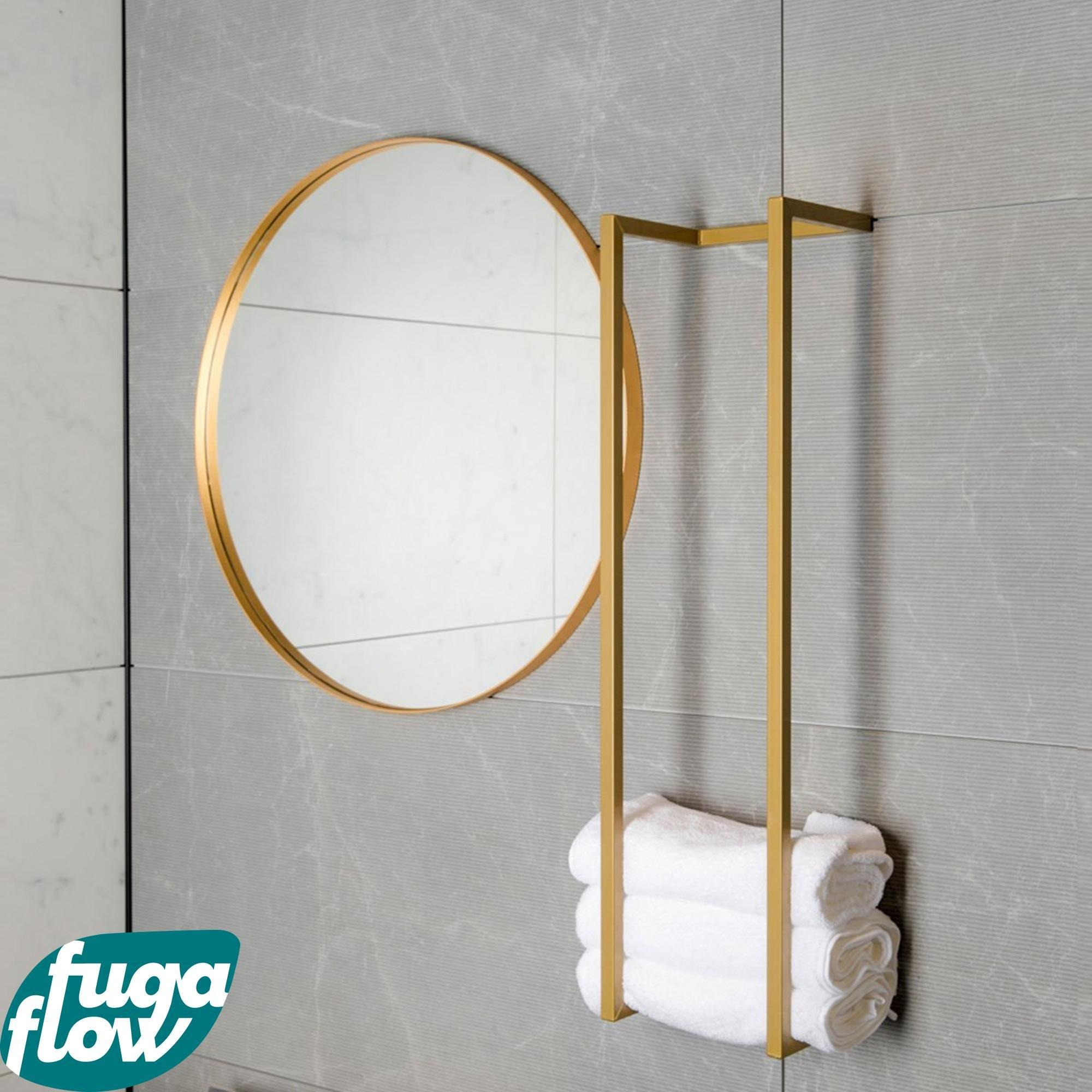 De glanzende gouden afwerking van dit handdoekrek geeft een luxe uitstraling aan je badkamer. Het tijdloze ontwerp past perfect bij zowel moderne als klassieke interieurs en voegt een vleugje glamour toe aan elke ruimte. Met het FugaFlow Handdoekrek creëer je een stijlvolle en georganiseerde badkameromgeving.