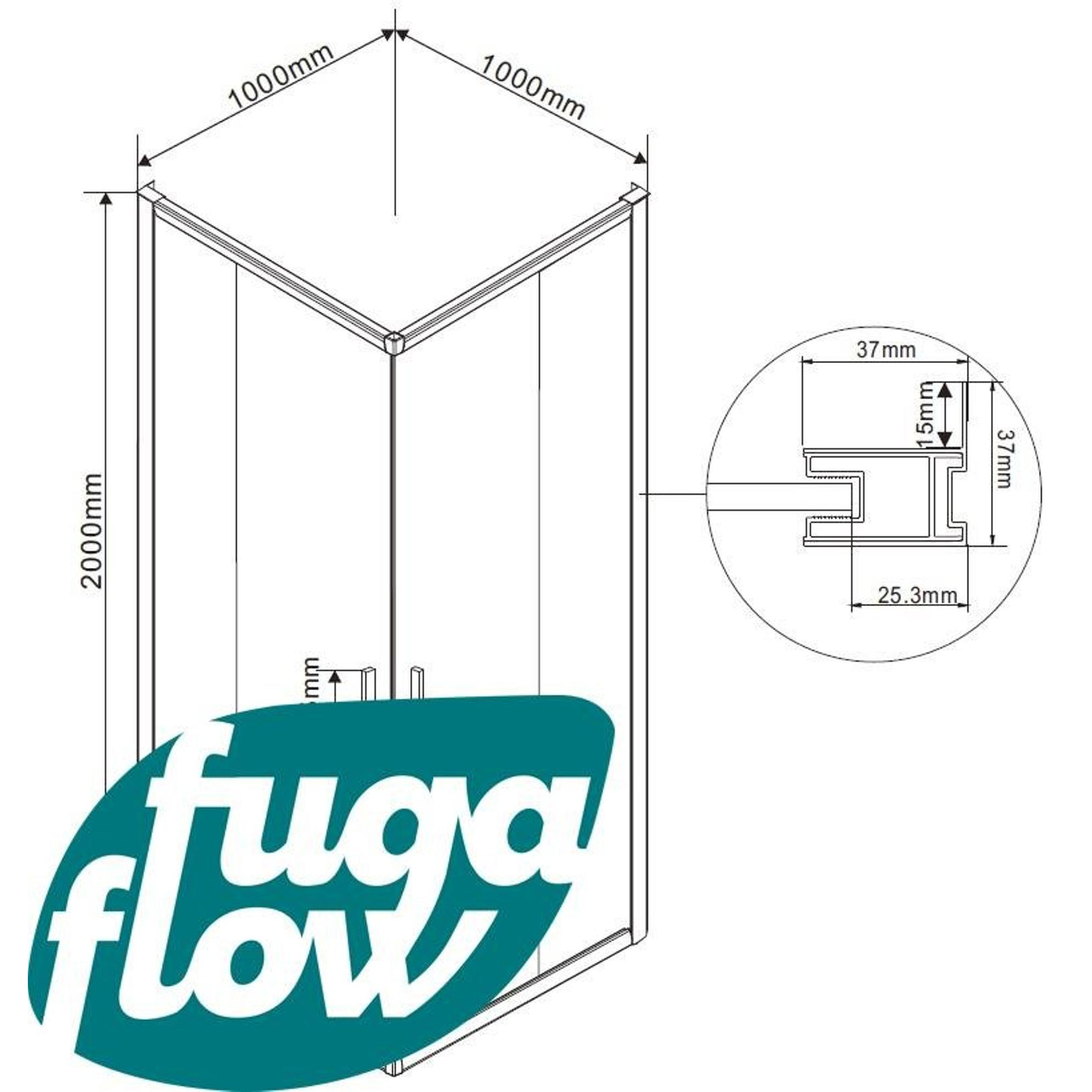 FugaFlow Efficiente Vetro Douchecabine - 100x100x200cm - kwartrond - helder glas - profiel - chroom