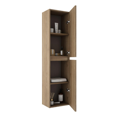De FugaFlow Eccelente Arredo Hoge Kast straalt stijl en elegantie uit. Het slanke ontwerp en de kaneelkleurige afwerking passen perfect bij een moderne of klassieke badkamerinrichting. De subtiele details en de gladde afwerking geven deze kast een luxe uitstraling. Plaats deze kast naast je wastafel of in een hoek van de badkamer voor een verfijnde uitstraling.