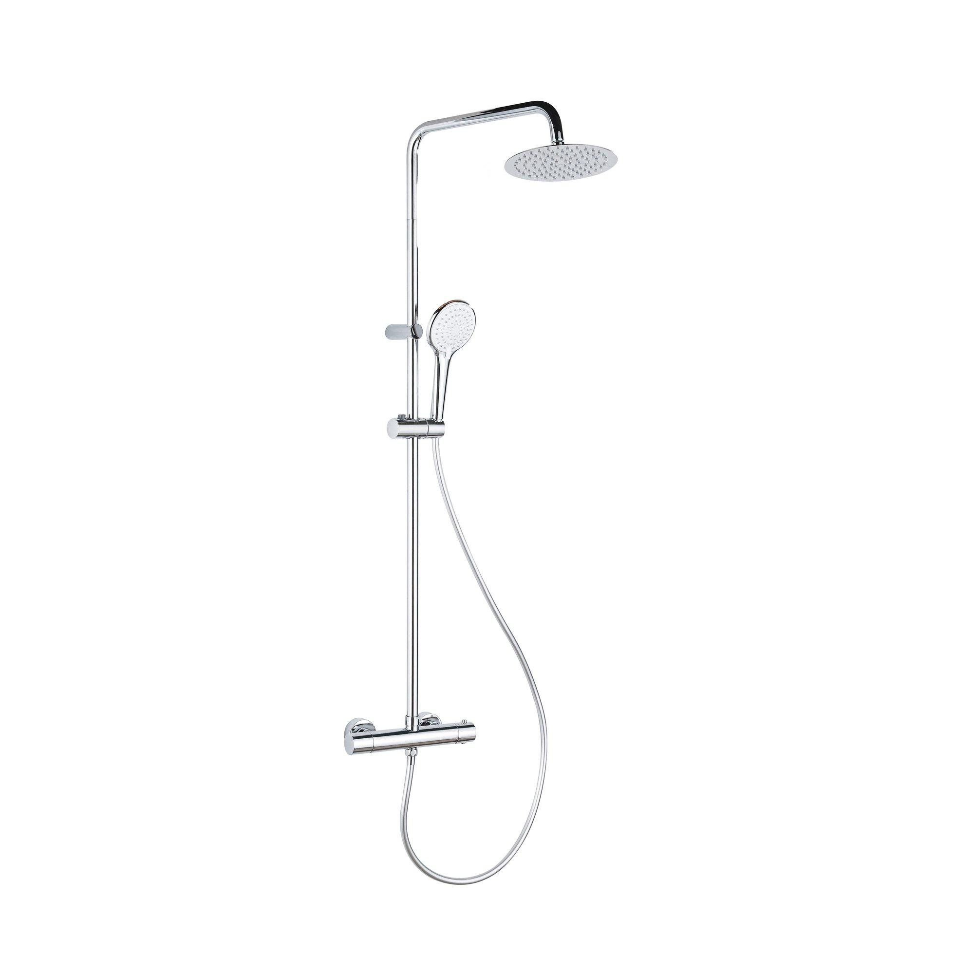 De FugaFlow Efficiente Sobrado regendoucheset met thermostaat, hoofddouche van 20 cm en handdouche met 3 standen in chroom is een prachtige toevoeging aan elke badkamer. Deze set combineert stijlvol design met functionaliteit, waardoor je kunt genieten van een luxueuze douche-ervaring. De glanzende chroomafwerking voegt een vleugje elegantie toe aan je badkamer en de regendouche zorgt voor een ontspannende en verfrissende douchebeurt. Met de thermostaatkraan kun je eenvoudig de gewenste watertemperatuur instellen, terwijl de handdouche met 3 standen zorgt voor extra gemak en comfort. Creëer je eigen spa-ervaring thuis met deze prachtige regendoucheset.