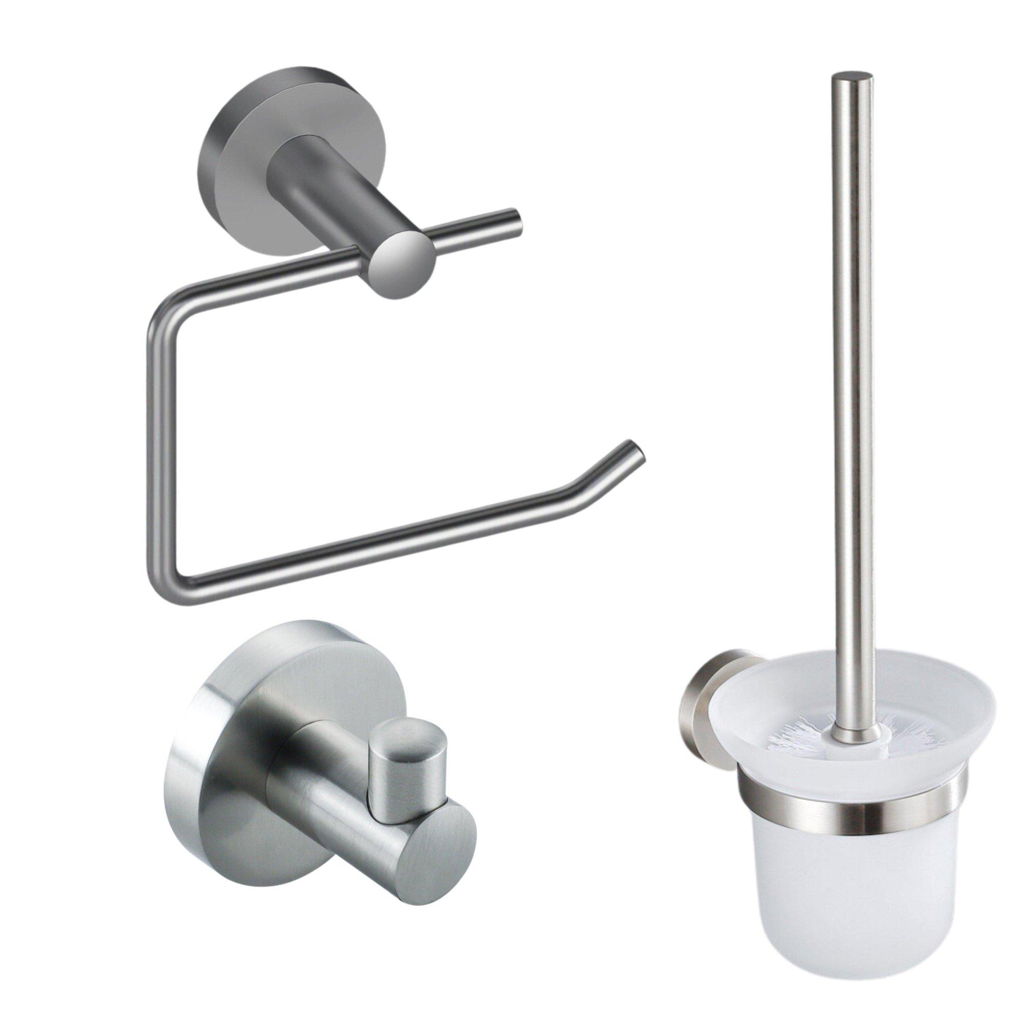 - Bestaande uit toiletborstel, toiletrolhouder en handdoekhaak