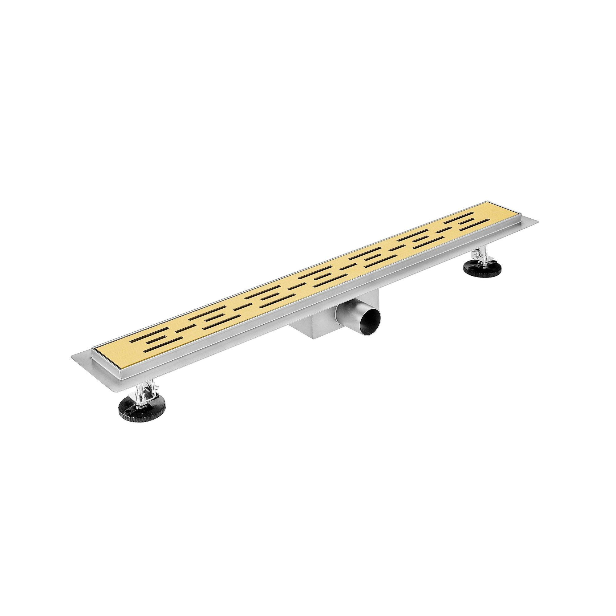 FugaFlow Eccelente Anta douchegoot badkamer - 200cm - met vloerflens - met rooster - geborsteld messing (goud)