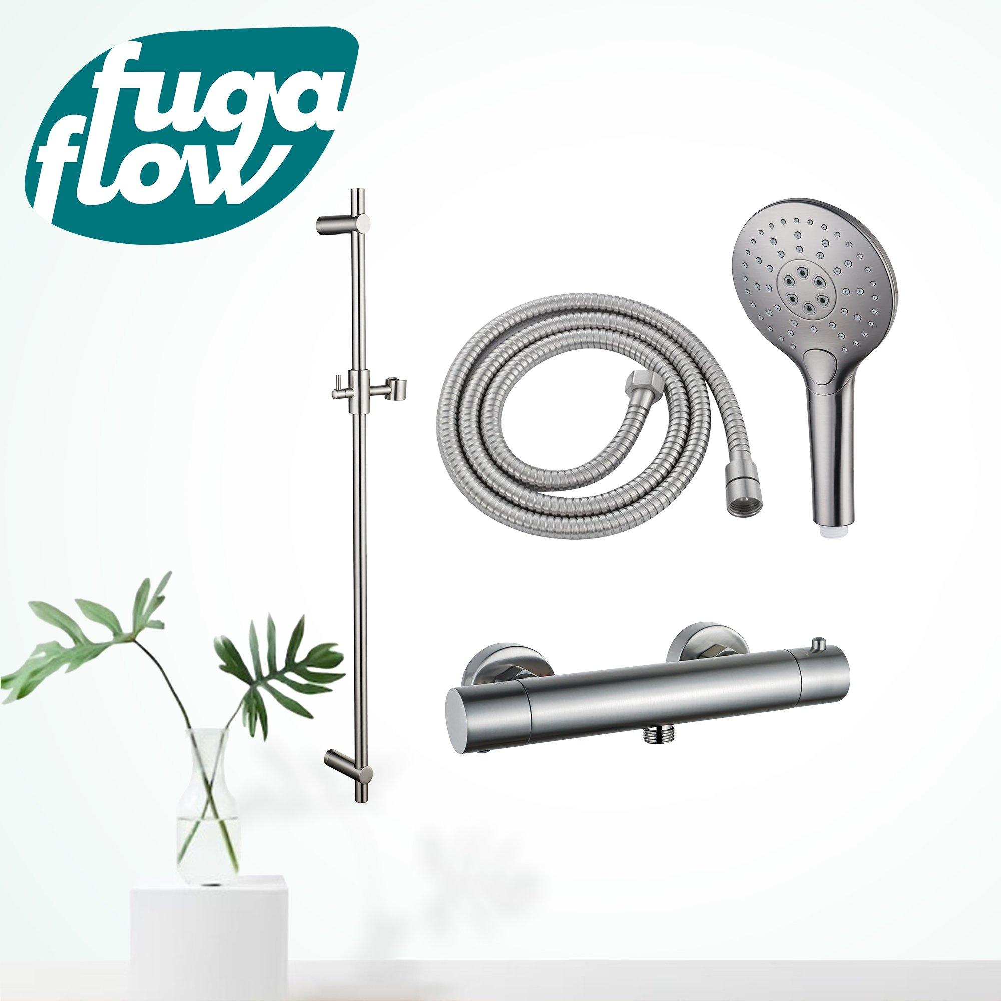 FugaFlow Eccelente Sobrado Badkamer douchekraan met glijstangset met ronde handdouche, metalen doucheslang geborsteld RVS PVD