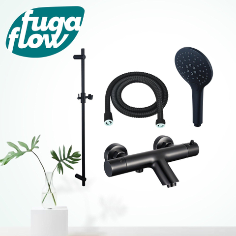 FugaFlow Eccelente Sobrado Badkamer badkraan met glijstangset met ronde handdouche, metalen doucheslang zwart mat