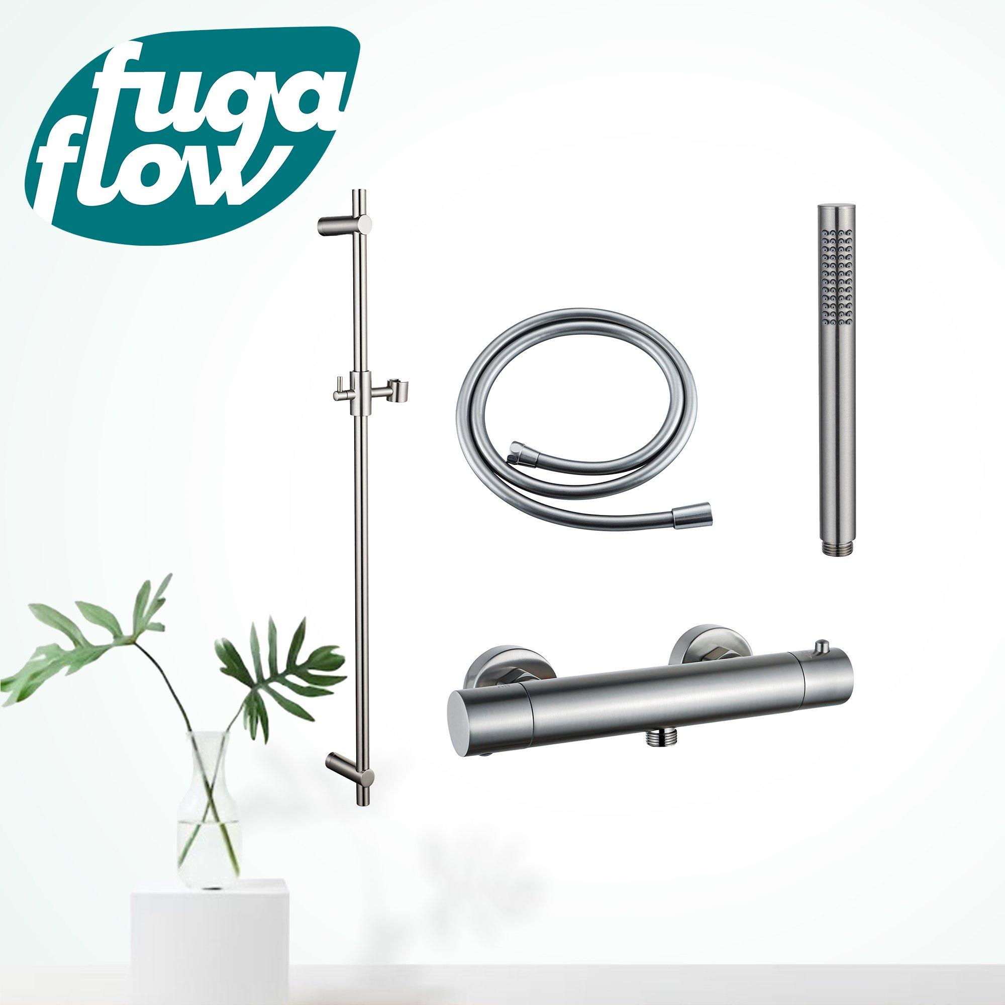 FugaFlow Eccelente Sobrado Badkamer douchekraan met glijstangset met staafhanddouche, gladde doucheslang geborsteld RVS PVD