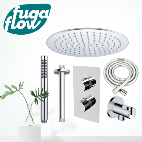 FugaFlow Eccelente Sobrado inbouw regendoucheset met thermostaat plafondarm hoofddouche staaf handdouche chroom