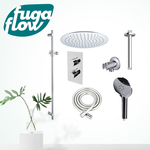 FugaFlow Eccelente Sobrado Inbouw Regendoucheset - thermostatisch - plafondarm -glijstang - 25cm hoofddouche - handdouche rond - chroom