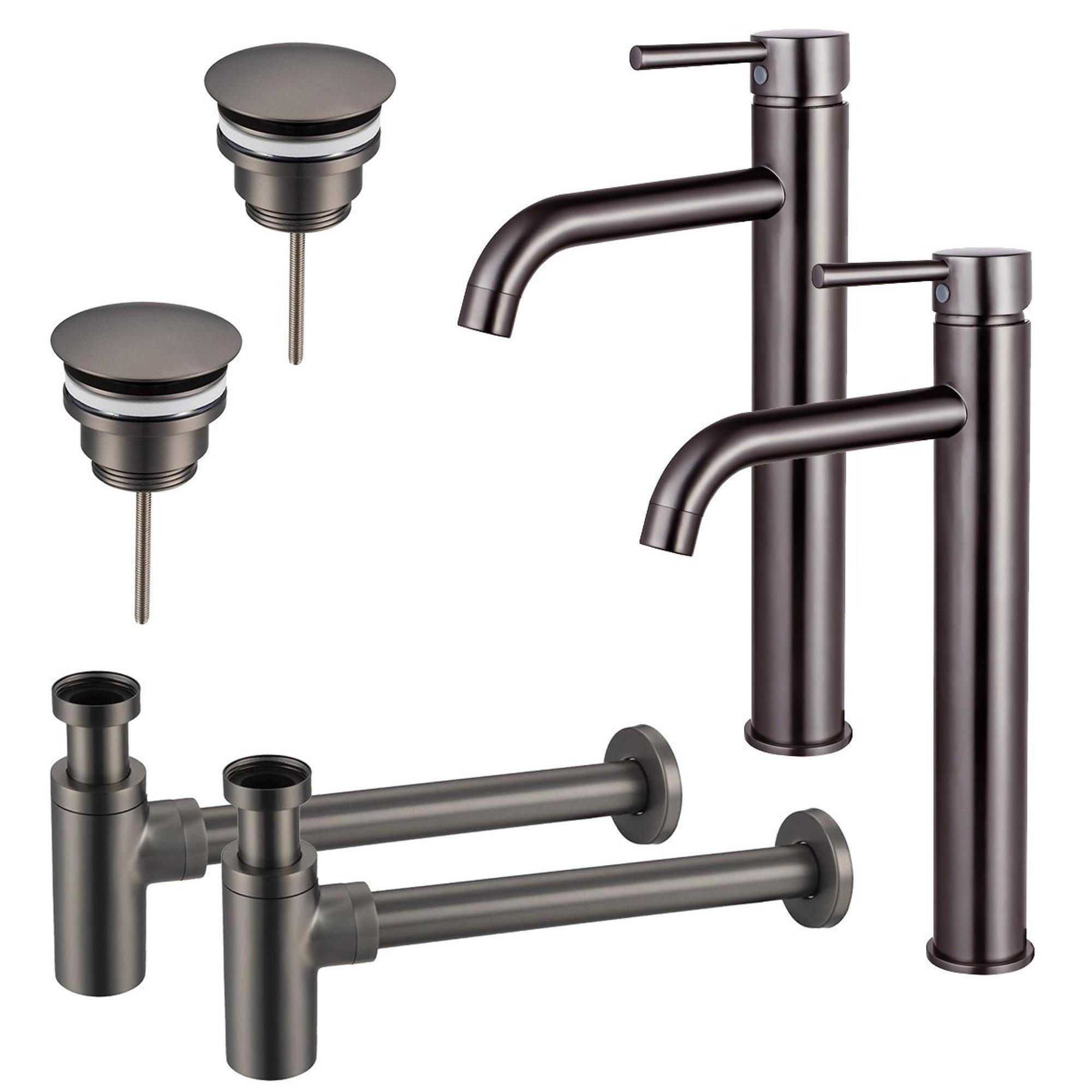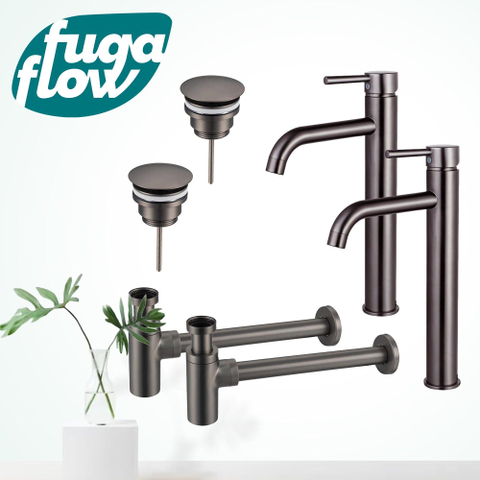 De FugaFlow Eccelente Sobrado Wastafelkraanset straalt elegantie uit met zijn verfijnde ontwerp en glanzende Gunmetal afwerking. De verhoogde wastafelkraan en design sifon voegen een moderne touch toe aan je badkamerinterieur. Deze set is perfect voor wie op zoek is naar een chique en stijlvolle uitstraling.