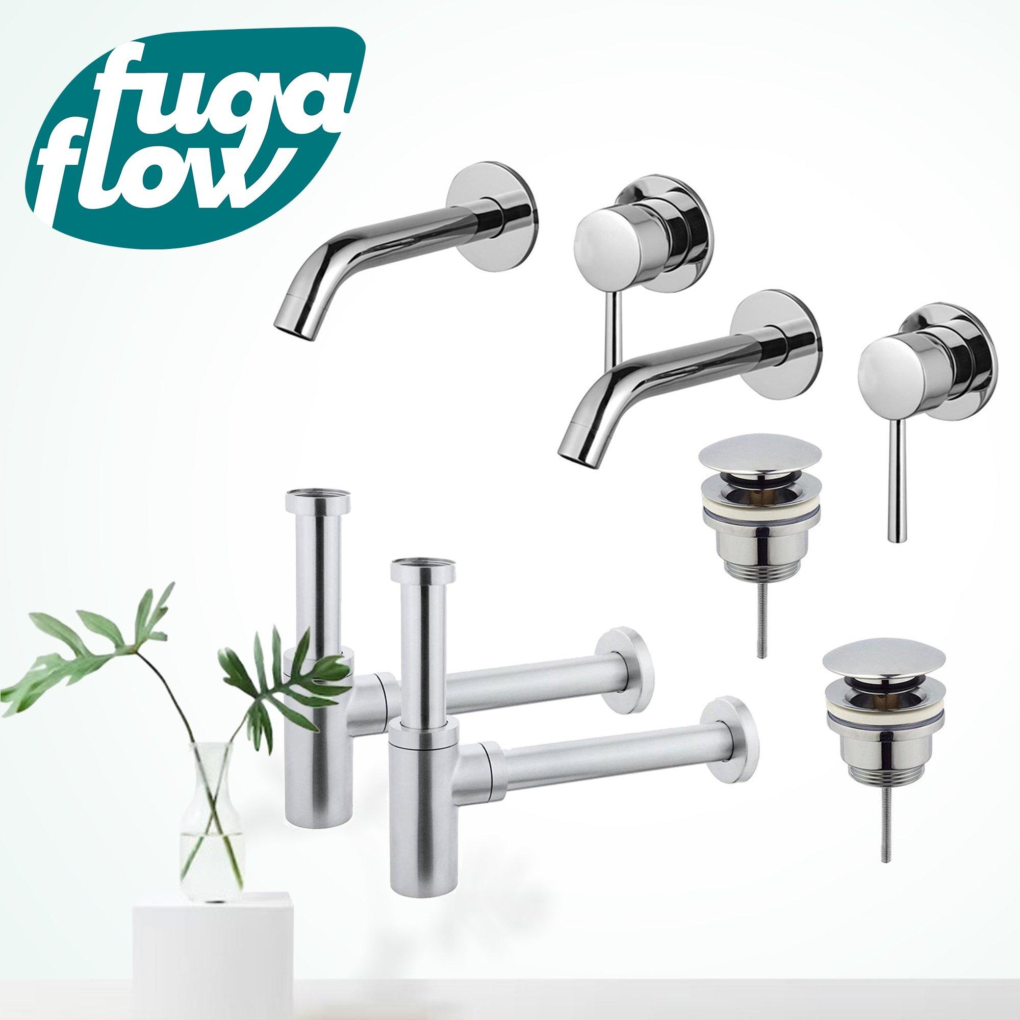 FugaFlow Eccelente Sobrado Wastafelkraanset - voor dubbele wastafel - inbouw wastafelkraan - klikwaste plug - design sifon - Chroom