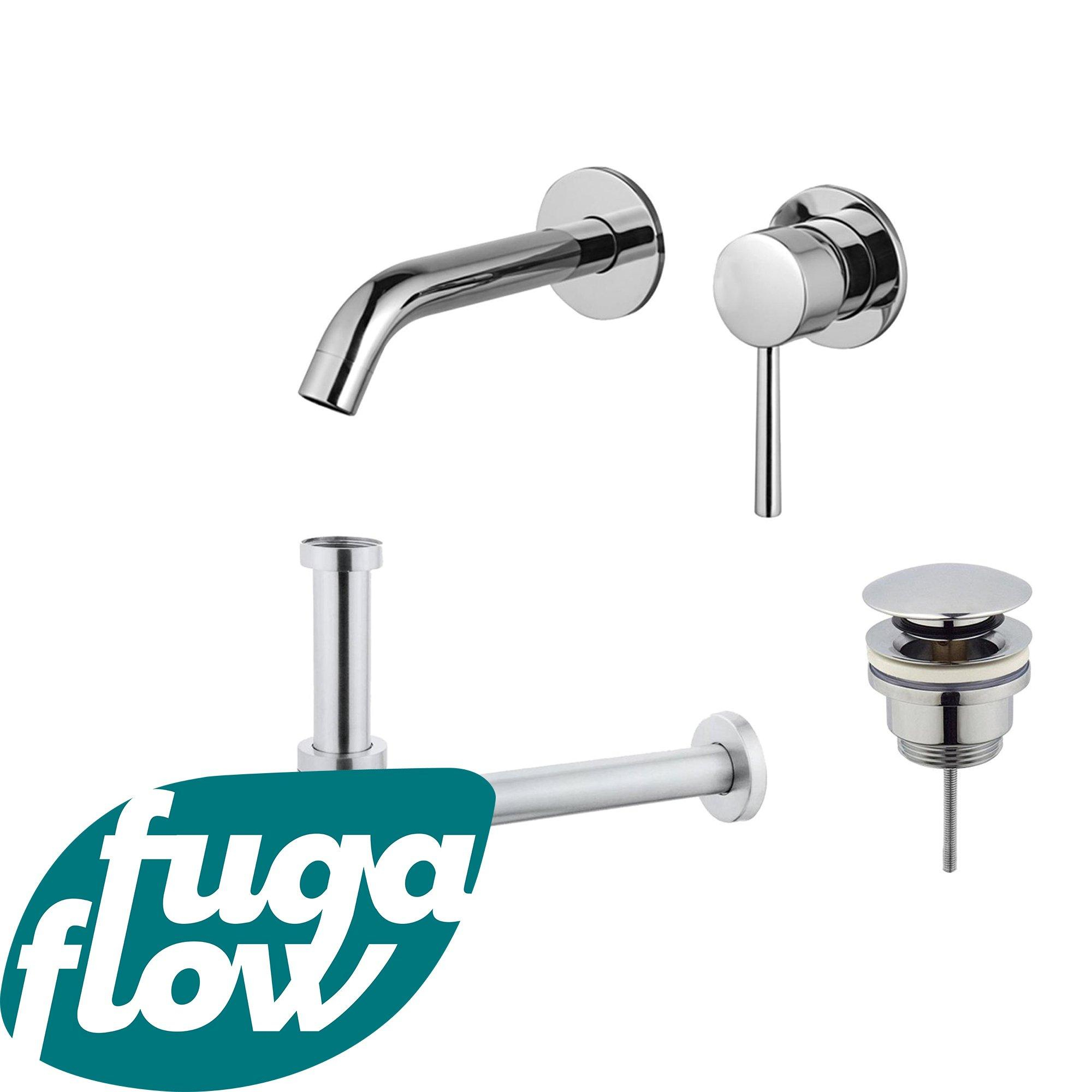 FugaFlow Eccelente Sobrado Slim Wastafelkraanset - inbouw wastafelkraan - klikwaste plug - design sifon - Chroom