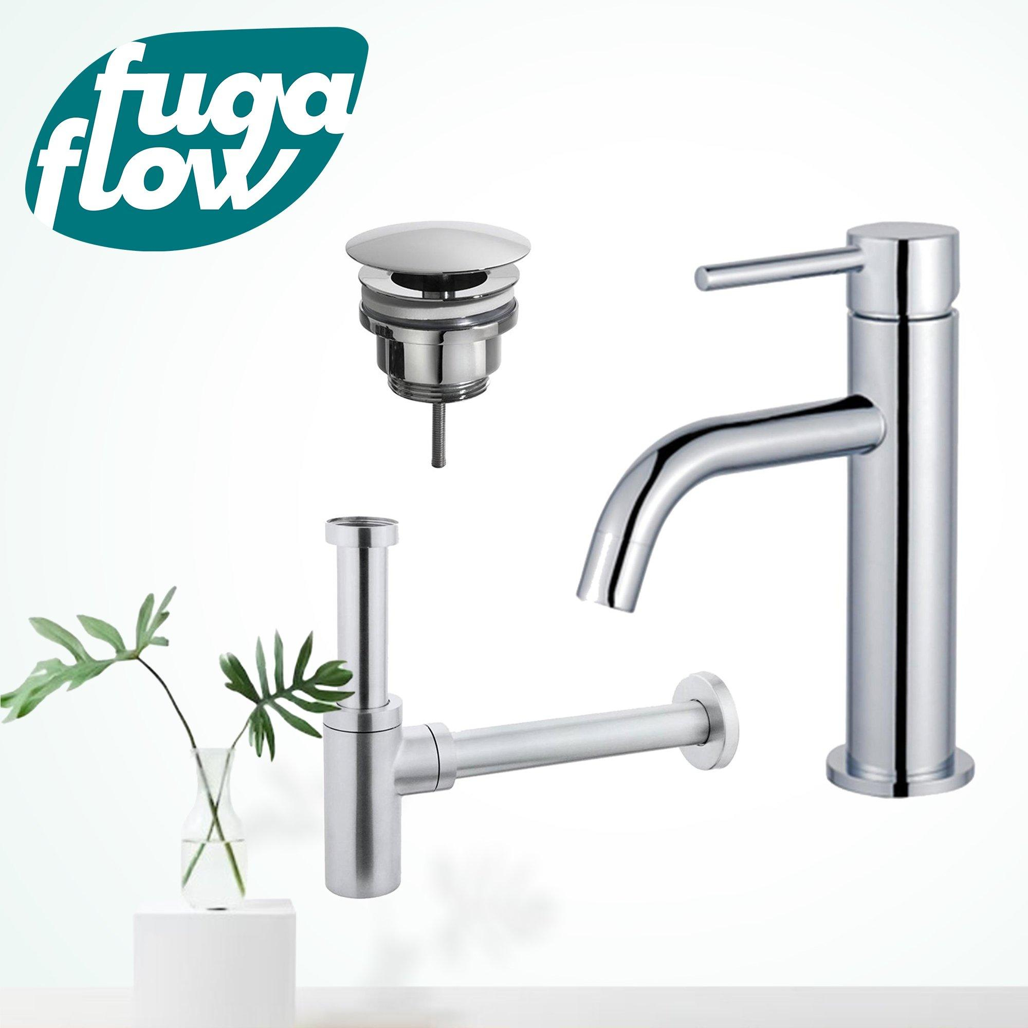 FugaFlow Eccelente Sobrado Slim Wastafelkraanset - lage wastafelkraan - always open plug - design sifon - Chroom