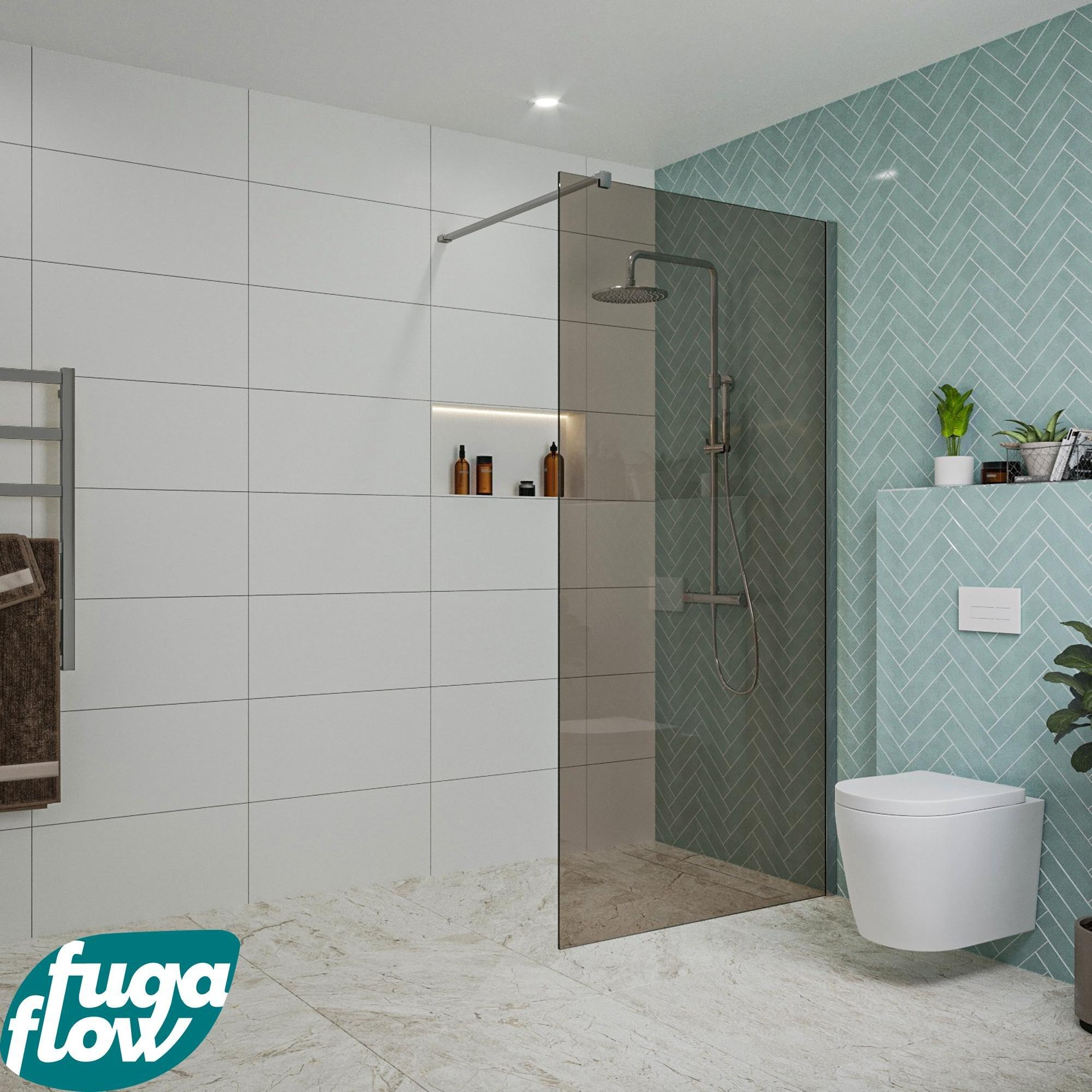 FugaFlow Eccelente Vetro inloopdouche - 100x200cm - rookglas - wandarm - chroom