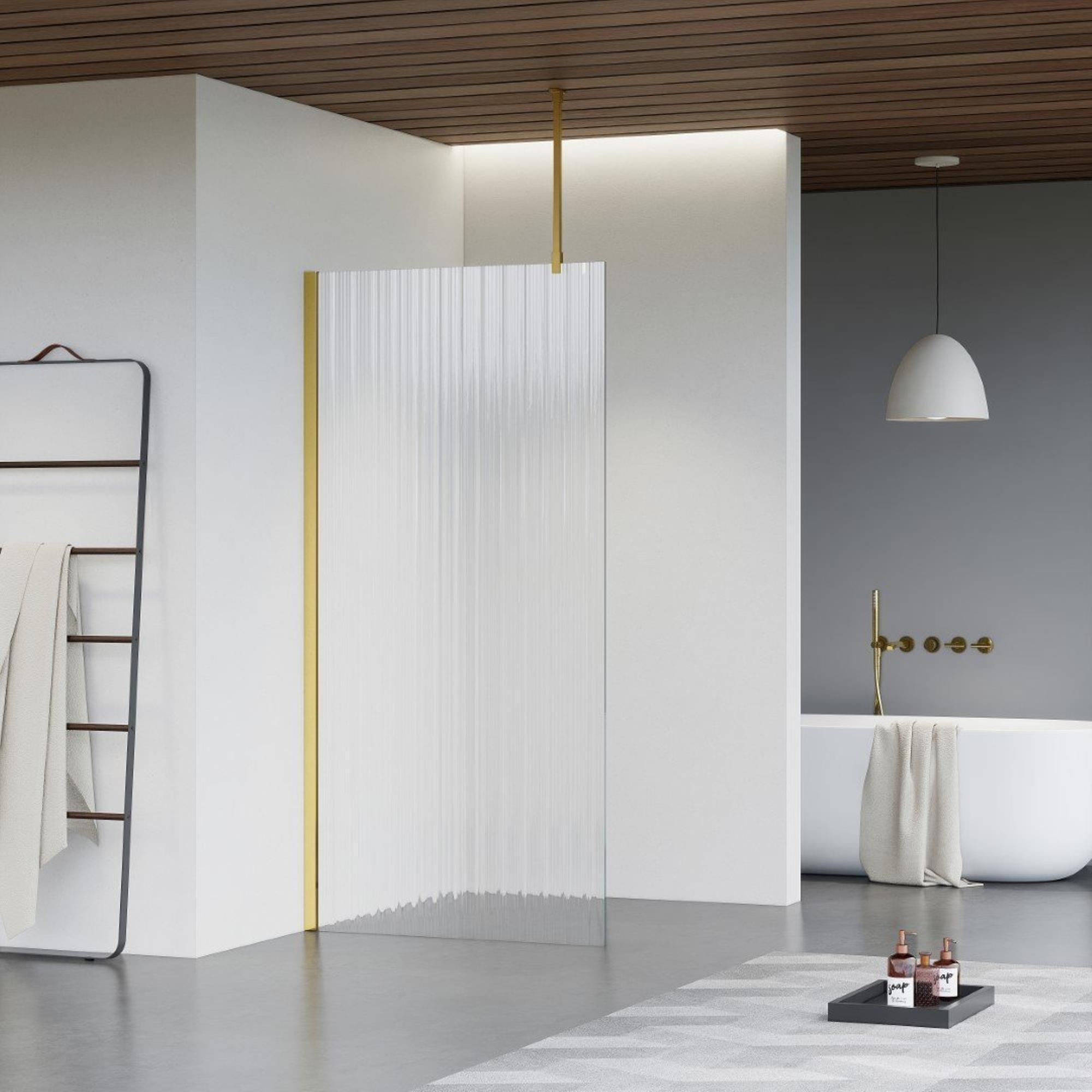 De FugaFlow Eccelente Vetro inloopdouche is een ware blikvanger die elke badkamer naar een hoger niveau tilt. De combinatie van ribbelglas en geborsteld messing geeft de douche een tijdloze uitstraling die moeiteloos past bij diverse interieurstijlen. Deze inloopdouche is niet alleen functioneel, maar ook een stijlvolle toevoeging aan uw badkamer.