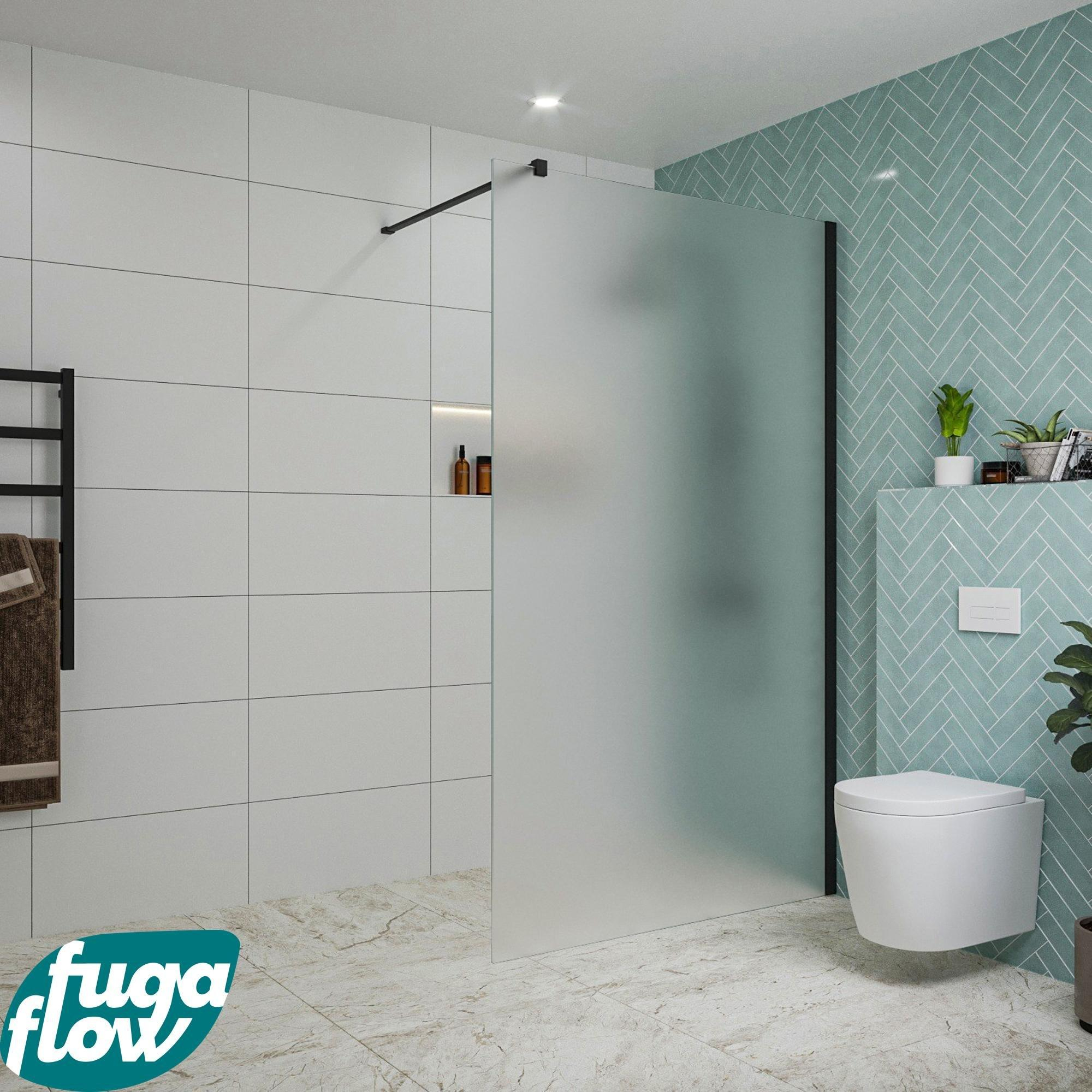 FugaFlow Eccelente Vetro inloopdouche badkamer - 120x200cm - mat glas - wandarm - mat zwart