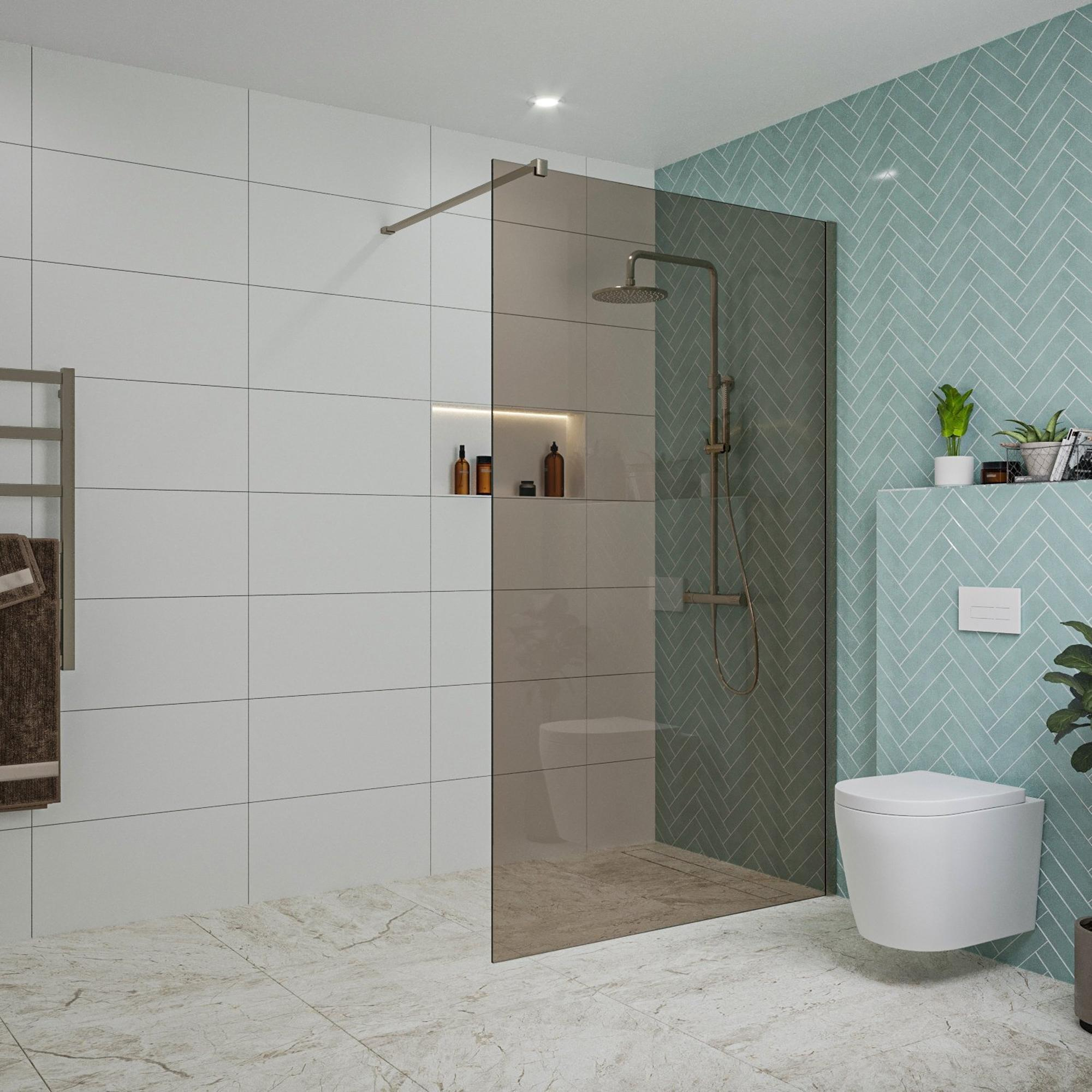 De FugaFlow Eccelente Vetro inloopdouche straalt een moderne uitstraling uit dankzij het rookglazen paneel en de gunmetal afwerking. Deze eigentijdse combinatie van materialen en kleuren past perfect in hedendaagse badkamers. Het minimalistische design en de strakke lijnen geven de douche een eigentijdse look die elke badkamer transformeert tot een stijlvolle ruimte.