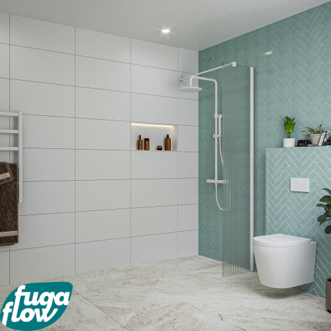 De FugaFlow Eccelente Vetro inloopdouche combineert moderniteit en luxe op een stijlvolle manier. Het tijdloze ontwerp en de verfijnde details maken deze douche een ware eyecatcher in elke badkamer. De mat witte afwerking geeft een vleugje elegantie, terwijl het ribbelglas een speels en eigentijds element toevoegt. Deze inloopdouche straalt klasse en stijl uit, waardoor het de perfecte keuze is voor wie op zoek is naar een chique uitstraling.