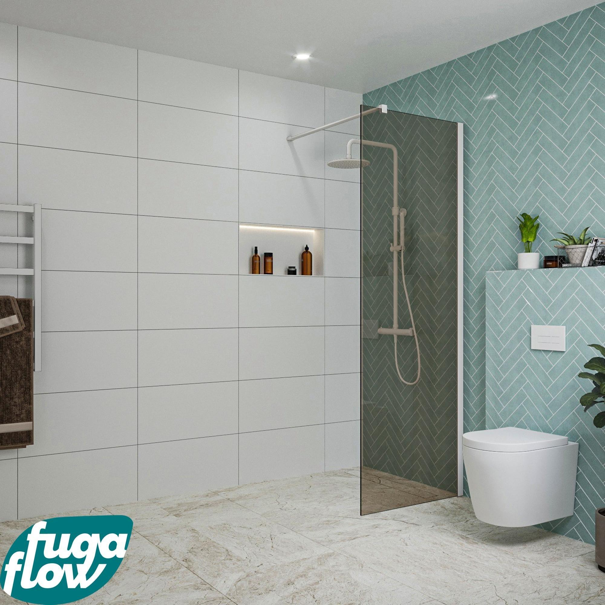 FugaFlow Eccelente Vetro inloopdouche - 70x200cm - rookglas - wandarm - mat wit