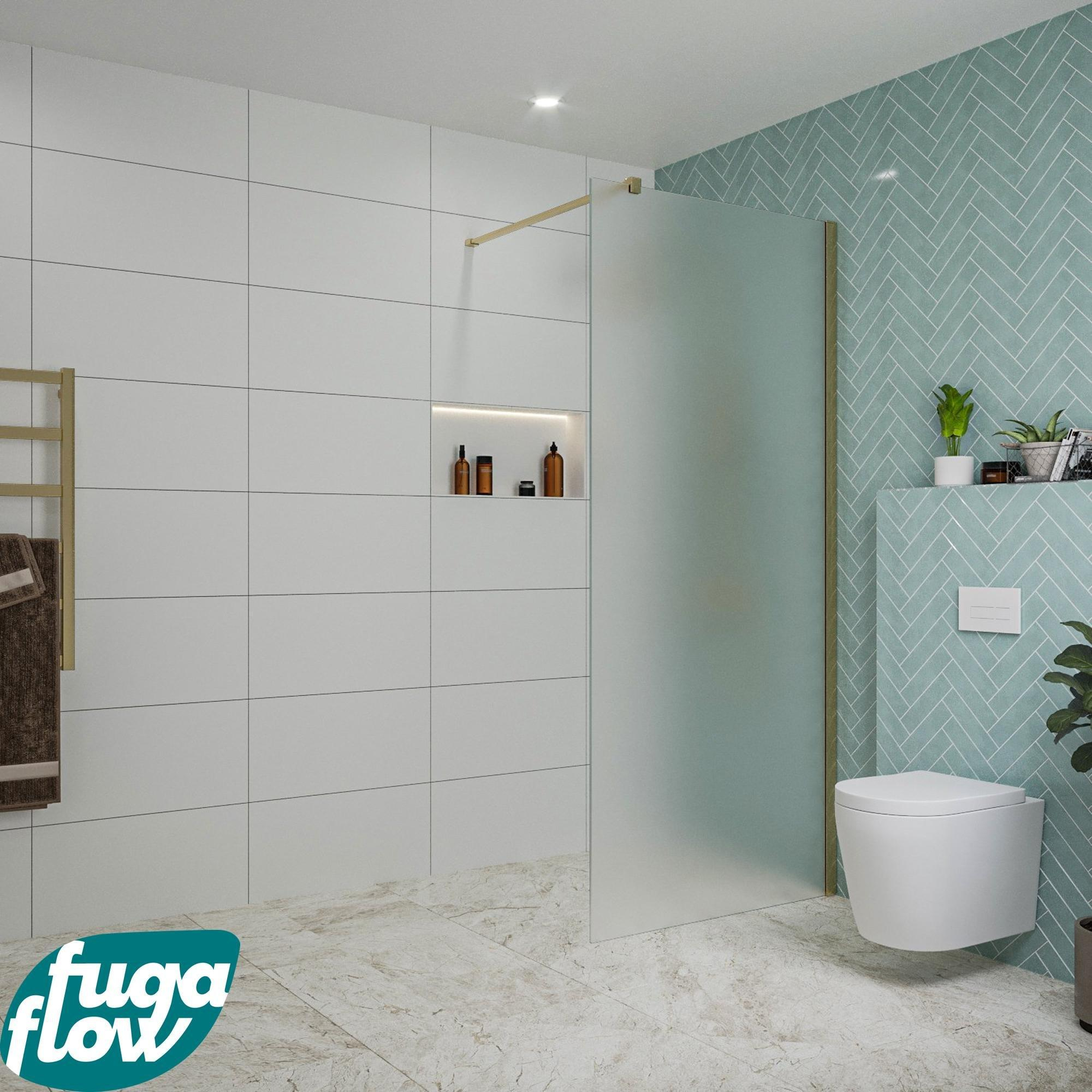 FugaFlow Eccelente Vetro inloopdouche badkamer - 90x200cm - mat glas - wandarm - geborsteld messing -