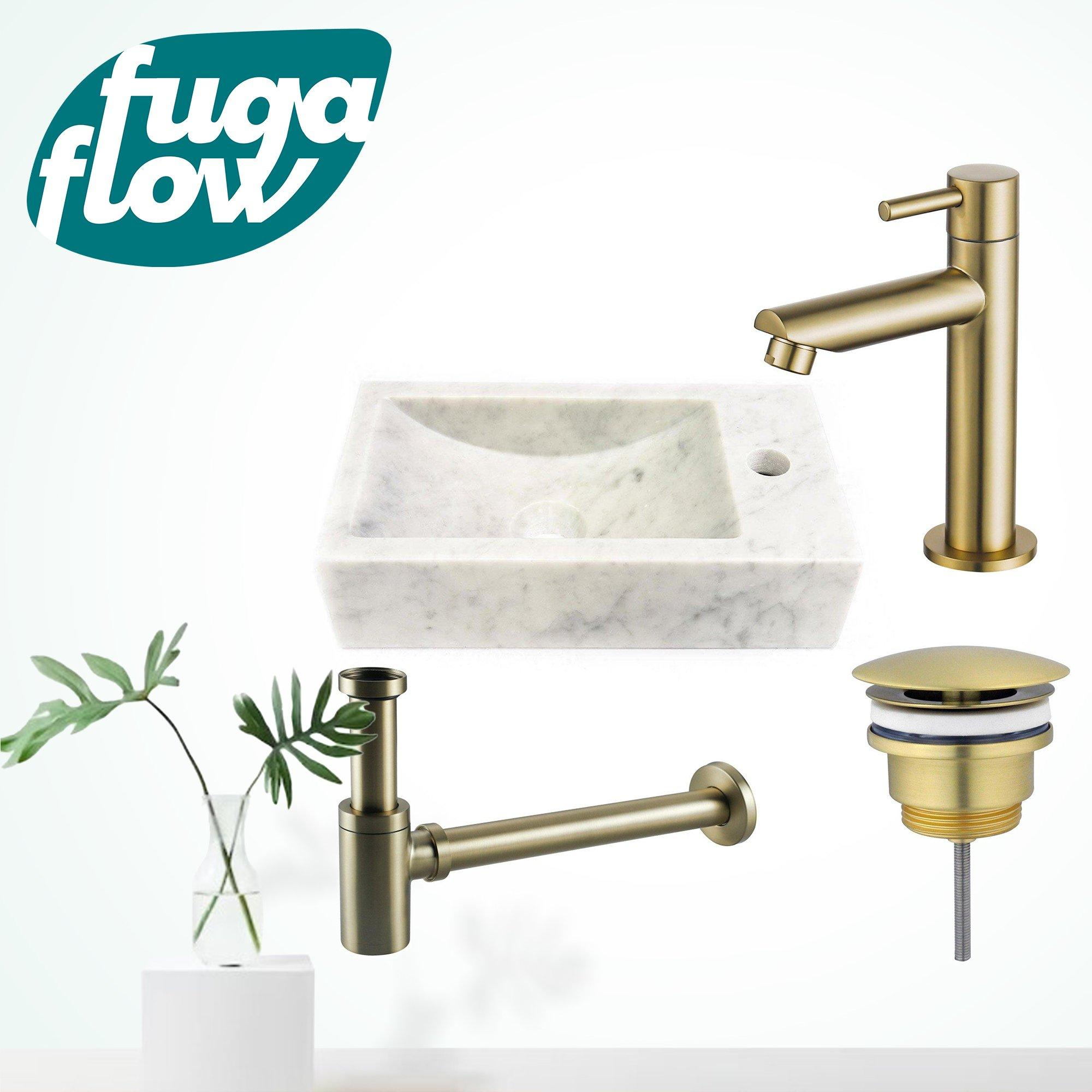 FugaFlow Eccelente Arredo fonteinset - 22x40x10cm - 1 kraangat - rechts - marmer - fonteinkraan messing geborsteld - wit -