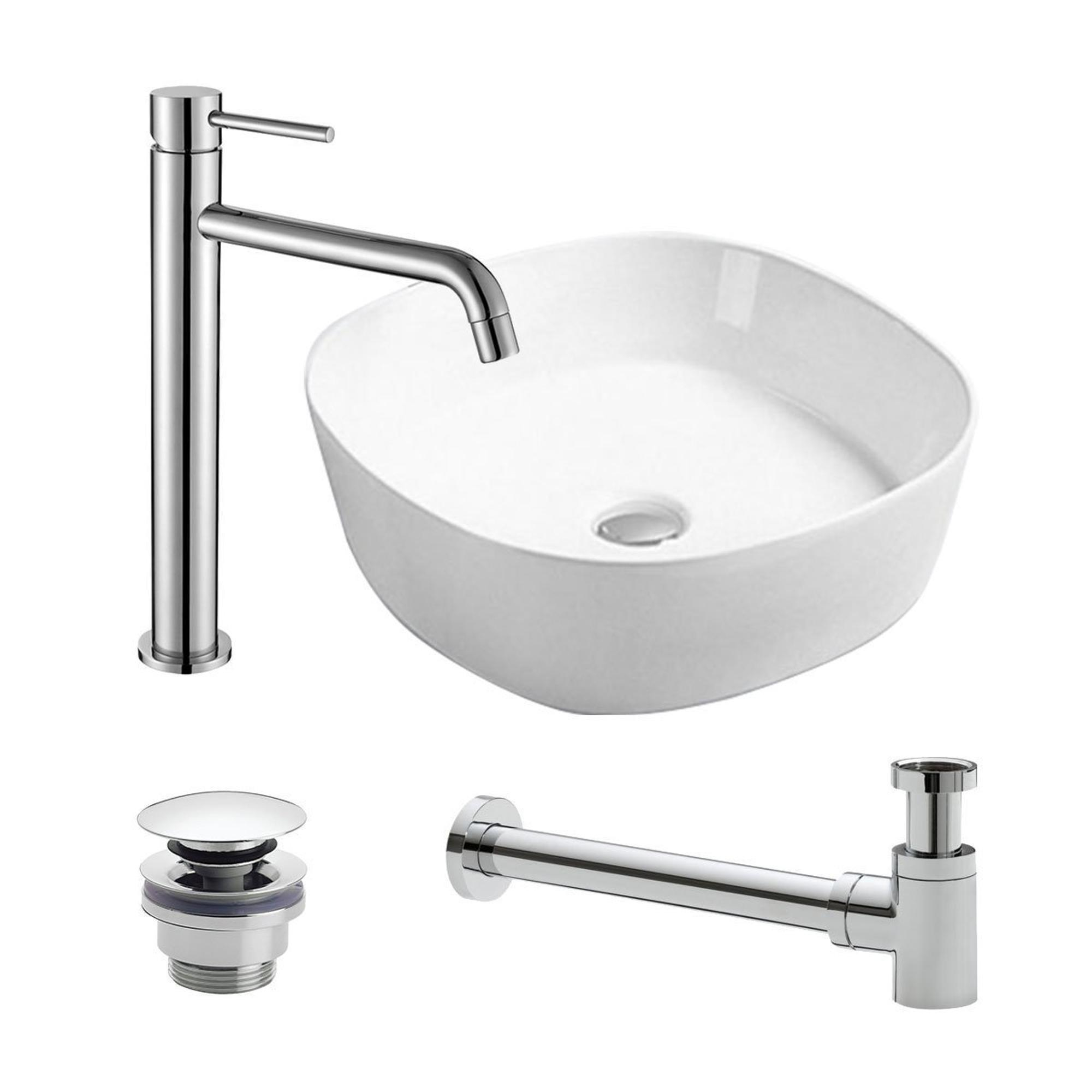 FugaFlow Eccelente Arredo waskom set met porseleinen waskom wastafelkraan en verlaagde afvoer chroom -