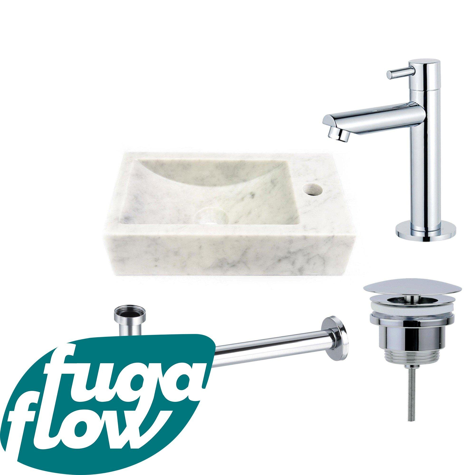 FugaFlow Eccelente Arredo fonteinset - 22x40x10cm - 1 kraangat - rechts - marmer - fonteinkraan chroom - wit -