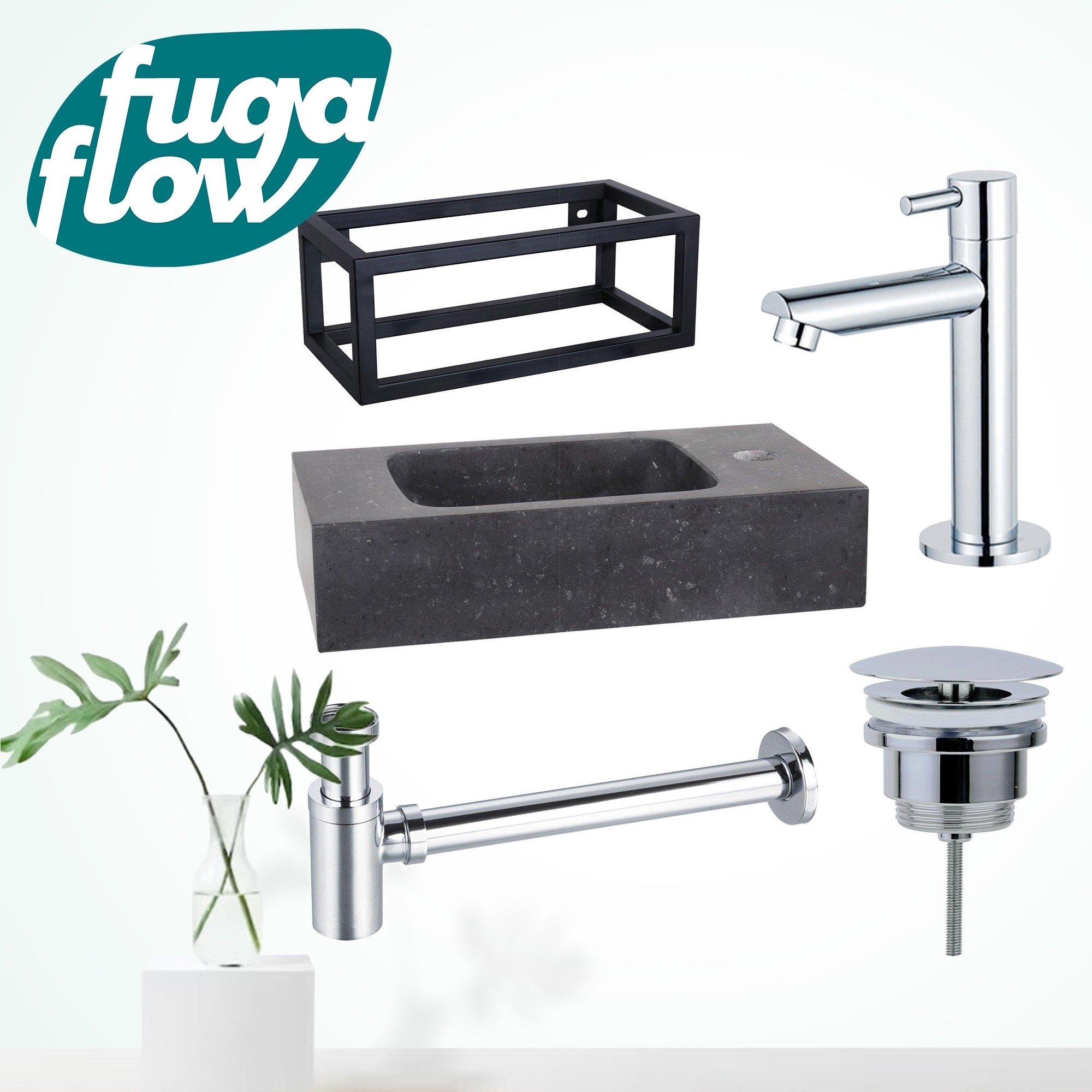 FugaFlow Eccelente Arredo fonteinset - 40x22x24.5cm - 1 kraangat - natuursteen - zwart frame - fonteinkraan chroom - zwart