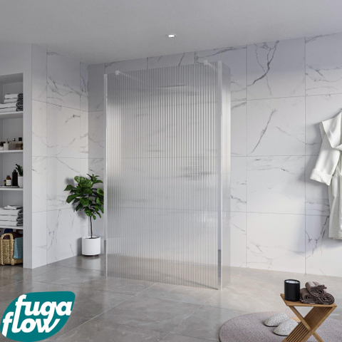 Ervaar een luxueuze douche-ervaring met de FugaFlow Eccelente Vetro Vrijstaande Inloopdouche. Het helder geribbelde glas creëert een elegante sfeer in de badkamer, terwijl het antikalksysteem zorgt voor een gemakkelijk onderhoud. De chroomafwerking voegt een vleugje luxe toe aan de inloopdouche, waardoor elke douche een verwennerij wordt.